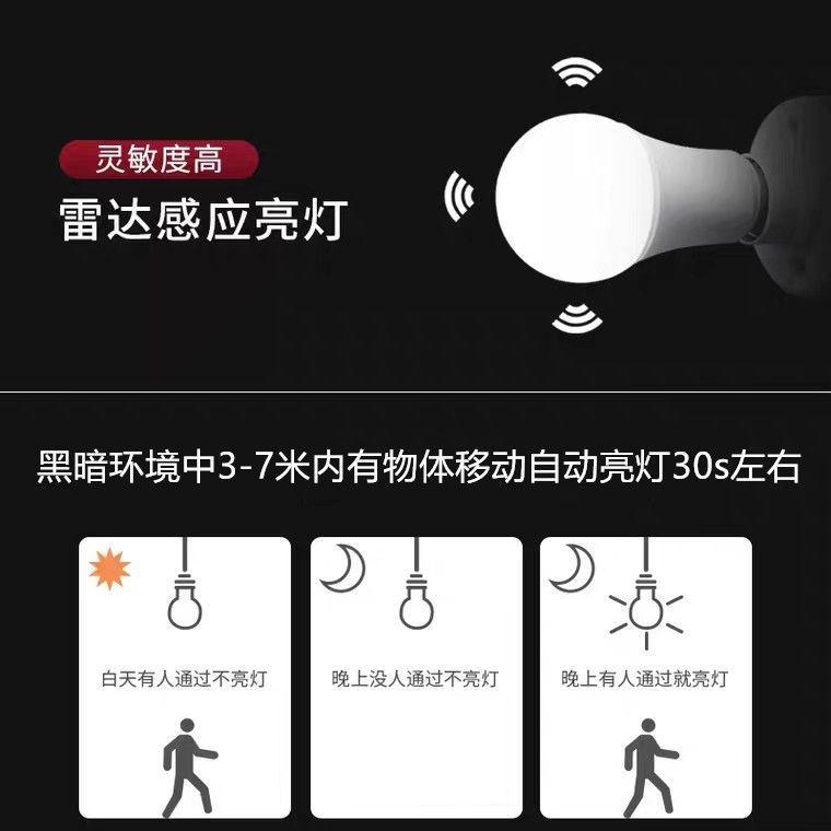 LED Human Body Infrared Radar Sensor Voice Control Bulb Aisle Stairwell Bathroom Smart Household E27 Screw