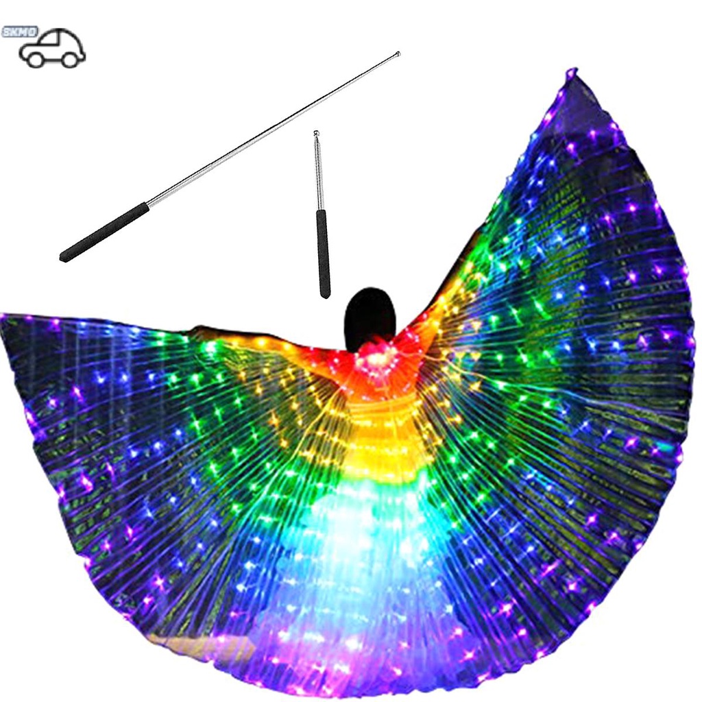 LED Isis Wings Belly Dance Wings Colorful Butterfly Wings w/ Telescopic Sticks Glowing Light Up CostumeSHOPSKC9308