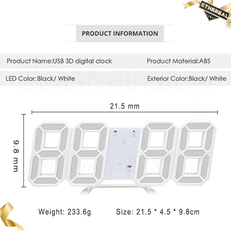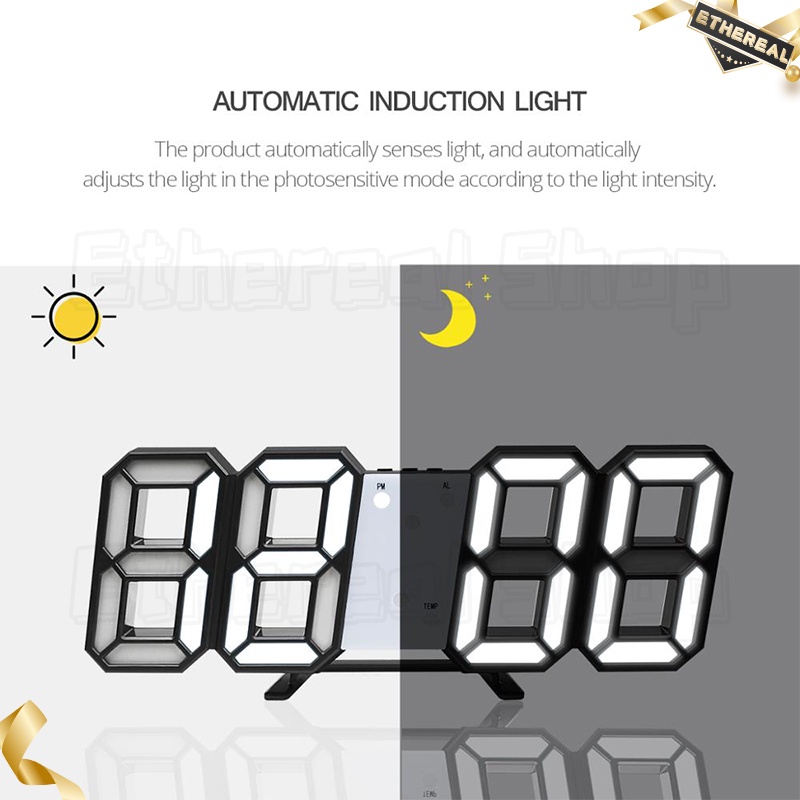 LED Jam Dinding / Meja LED Wall Clock Modern Digital 3D Alarm Clock Display Table Desk Night lamp