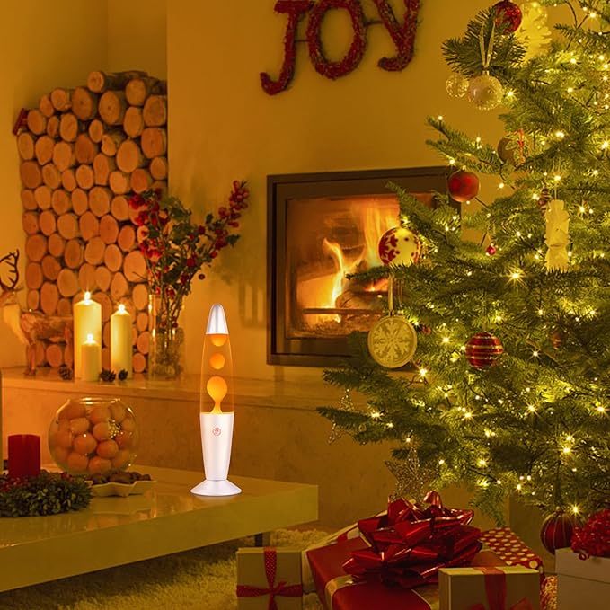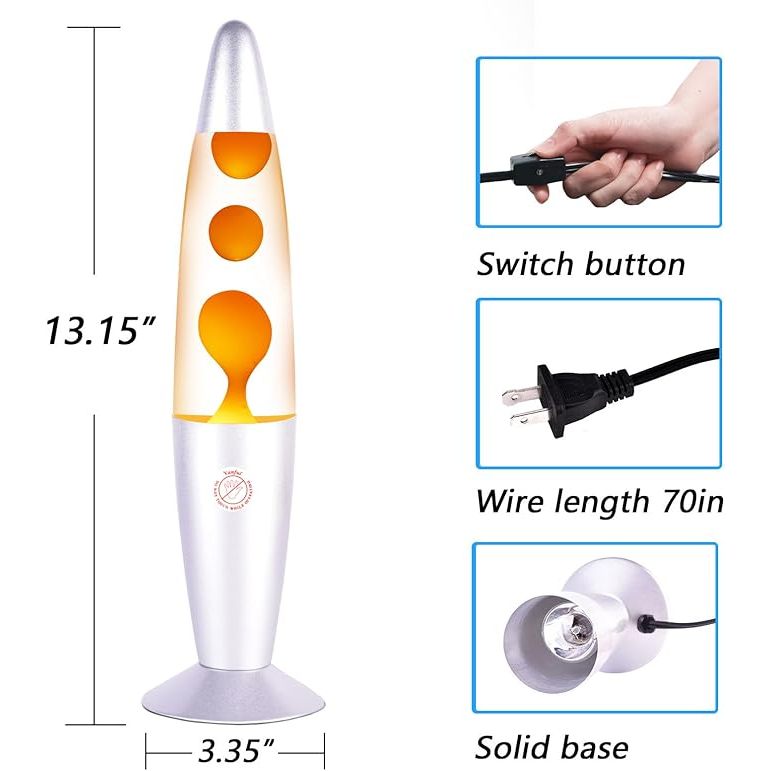 LED Lava Lamp Night Light Bedroom, 13" Mood Table Lamp Aesthetic Yellow Wax Liquid Motion Light for Living Room,Bar, Camping