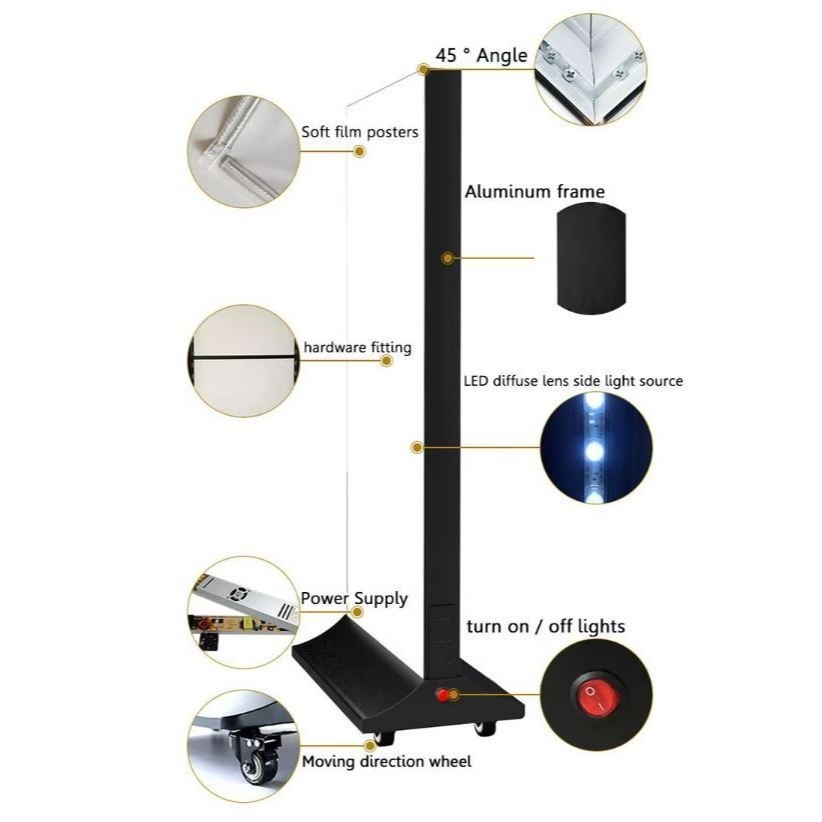 LED Light 80x180cm Big Size Sign Standee / Food Printing Event Restaurant Mall Display Signage Stand