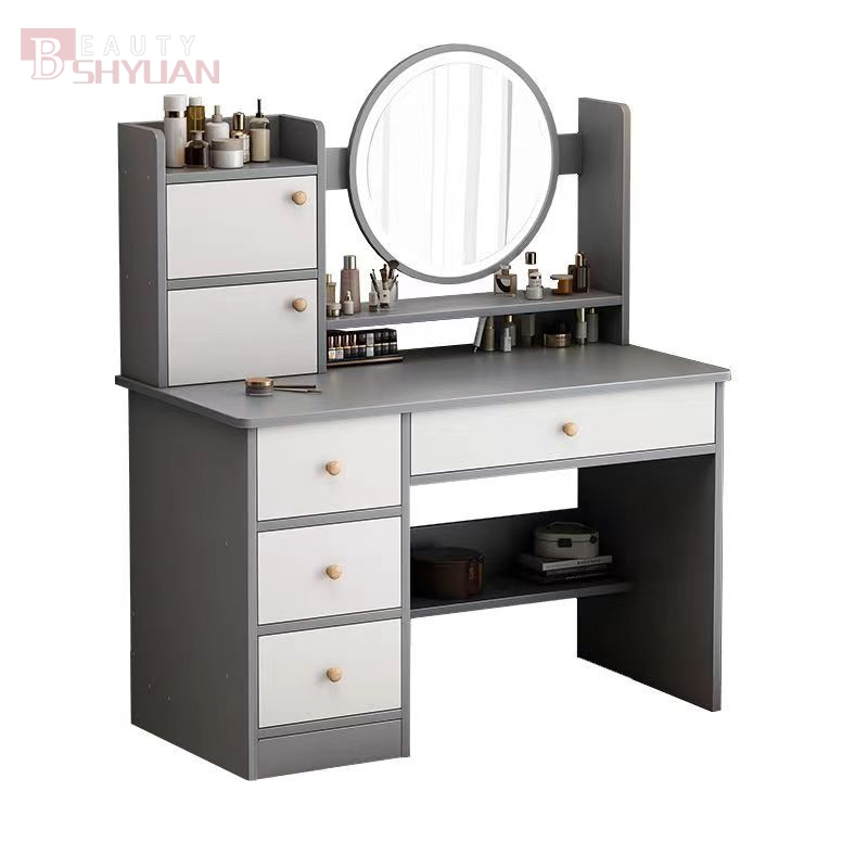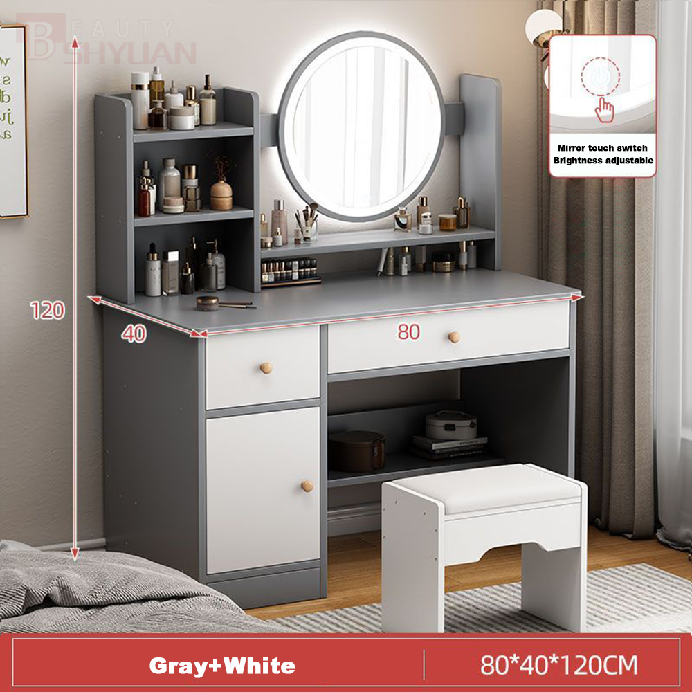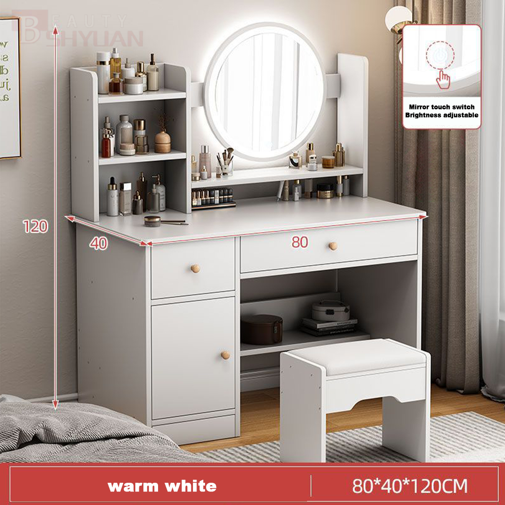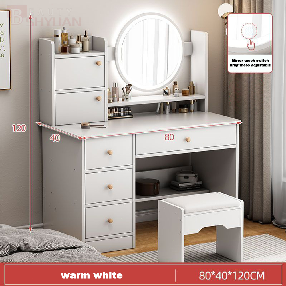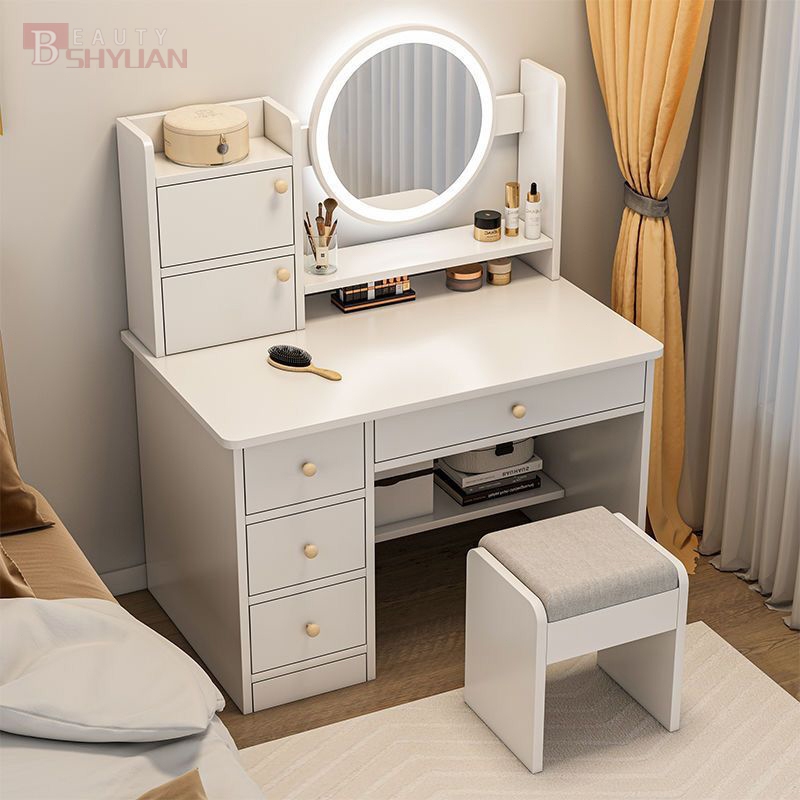 LED Light Dresser Simple Modern Bedroom Dresser White Oval Dresser With Mirror