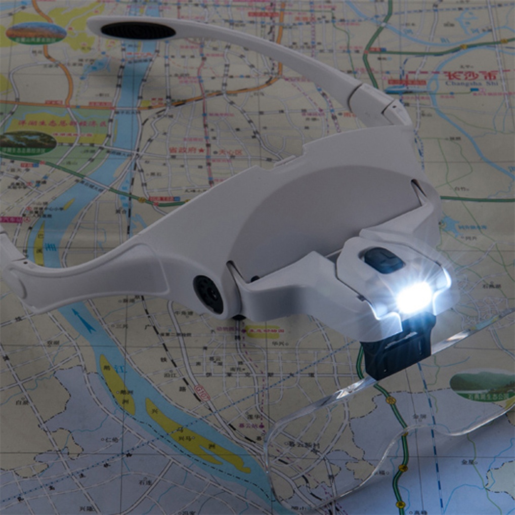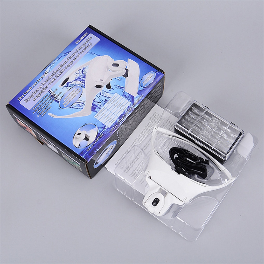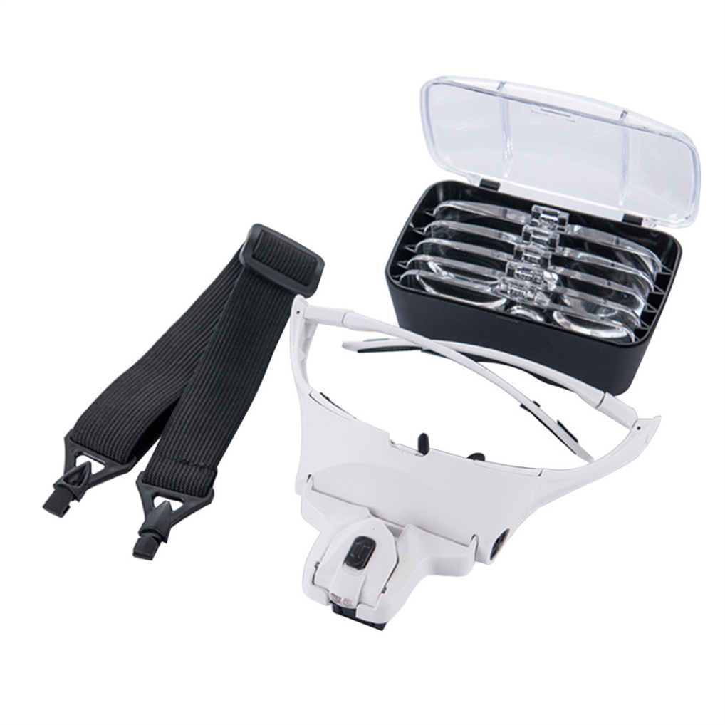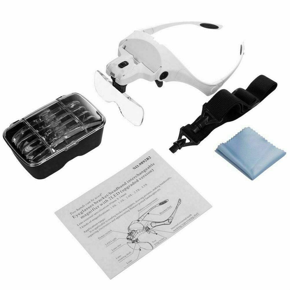LED Light Lamp Visor Head Magnifying Glass Lens Loupe Jeweler Headband Magnifier 5 x Lenses