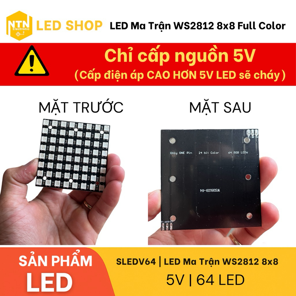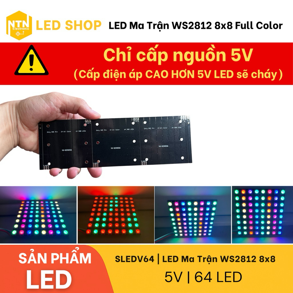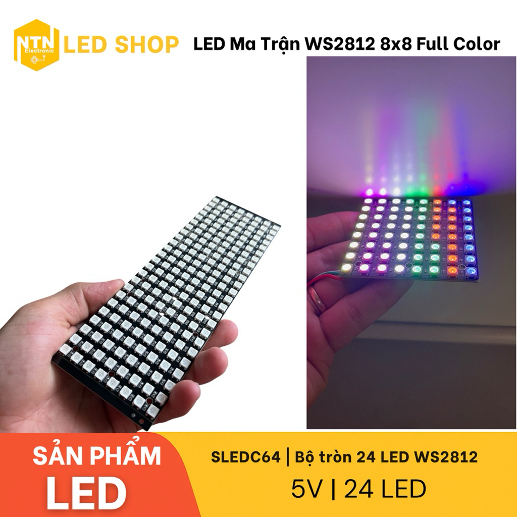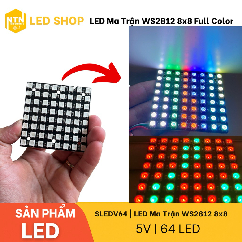 LED Matrix WS2812 8x8 Full Color | LED Matrix 64 RGB bulbs Controlled by Point via Arduino STM32 ESP32 5V
