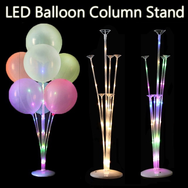 LED Plastic Balloon Column Stand Balloon Accessory Base Table Aupport with 7 Tubes Balloon Holder Cup Stick Stand Birthday Party Wedding Balloons Decoration