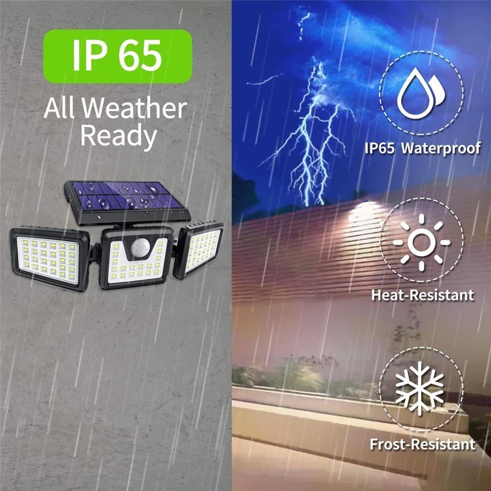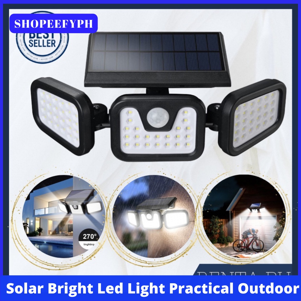 Solar 3 Head Outdoor Practical Light Waterproof Motion Sensor Garden Security Flood Lamp Energy Savi