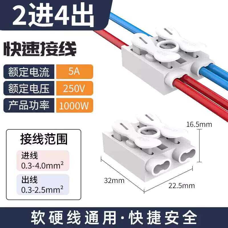 LED Push-Type Self-Locking Quick Terminal Block ZQ Korean Style High Power Two-In Four-Out Wire