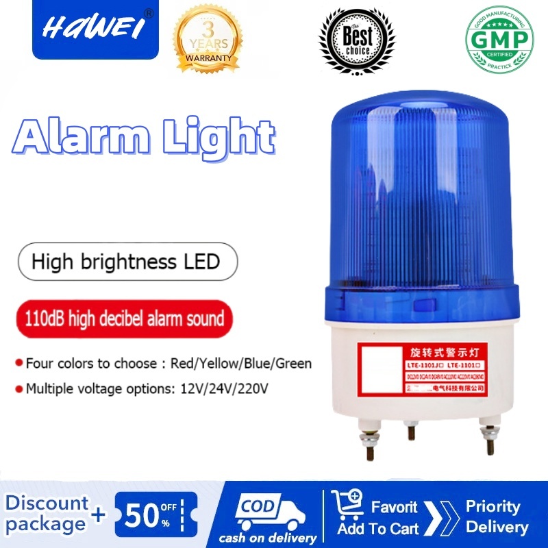 LED Rotary strobe warning light Machine alarm light 220V/24V/12V 110dB Rotating Strobe Beacon Emergency Warning Light, Flashes Per Minute 70-80, With Buzzer, Red Blue Yellow Green