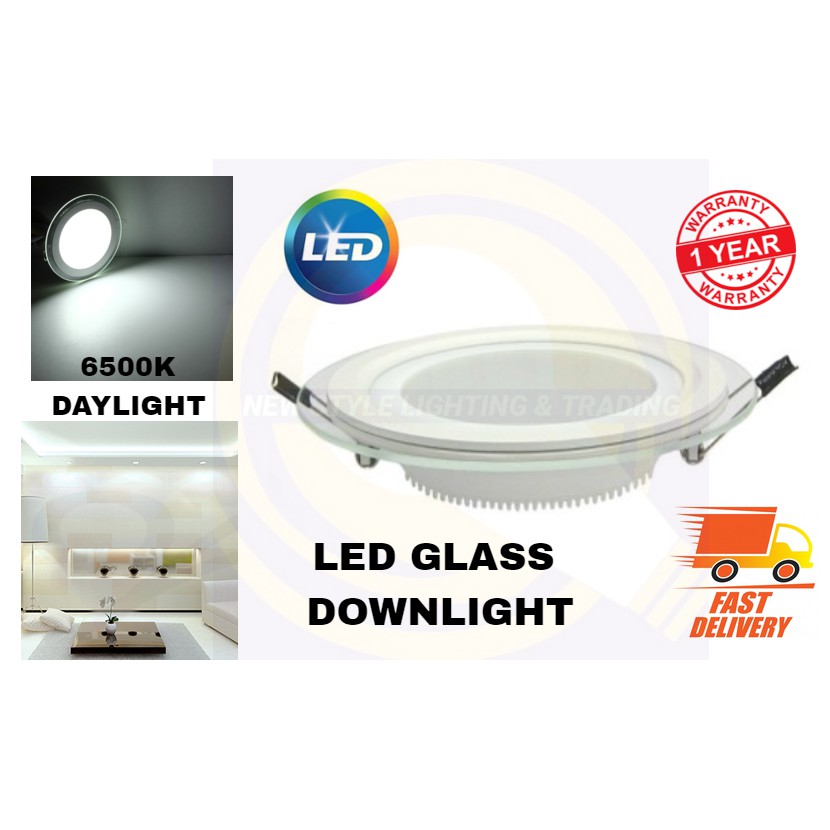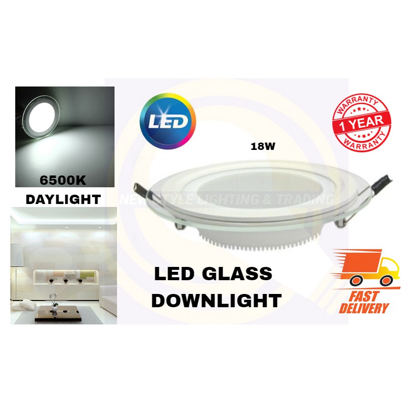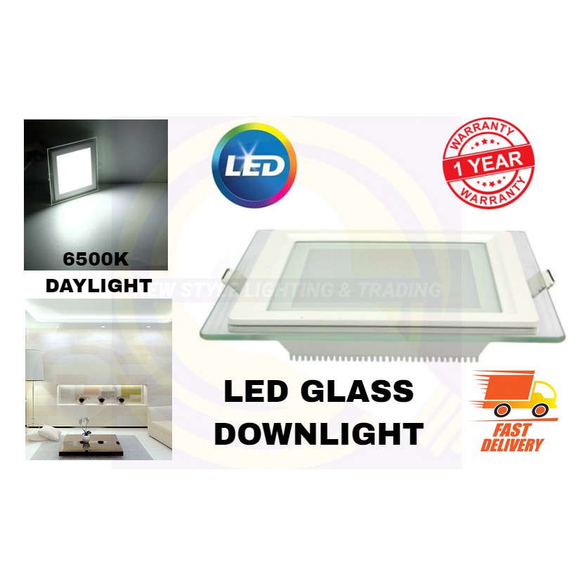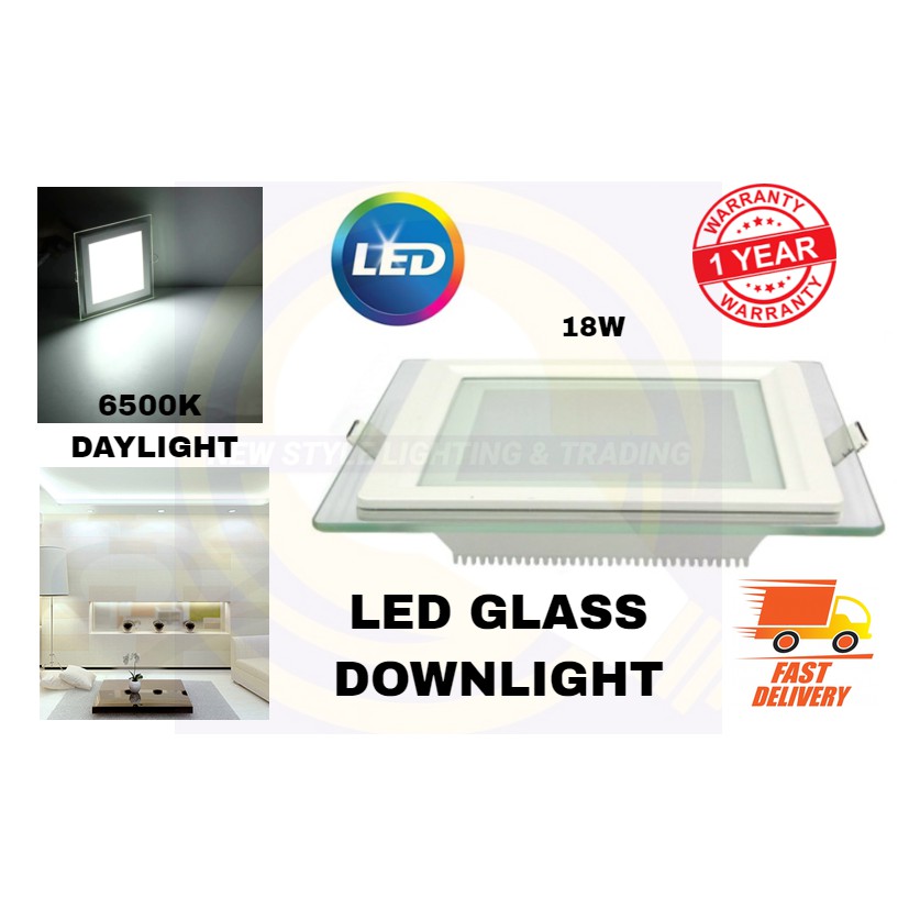 LED SIRIM GLASS PANEL DOWNLIGHT 4 INCH 12W / 6 INCH 18W / ROUND / SQUARE ( 6500K DAYLIGHT)