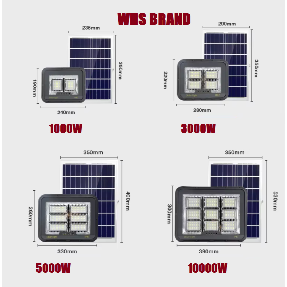 LED SOLAR flood light 1000W/3000W/5000W/10000W ABS material charging Display Waterproof ABS Material