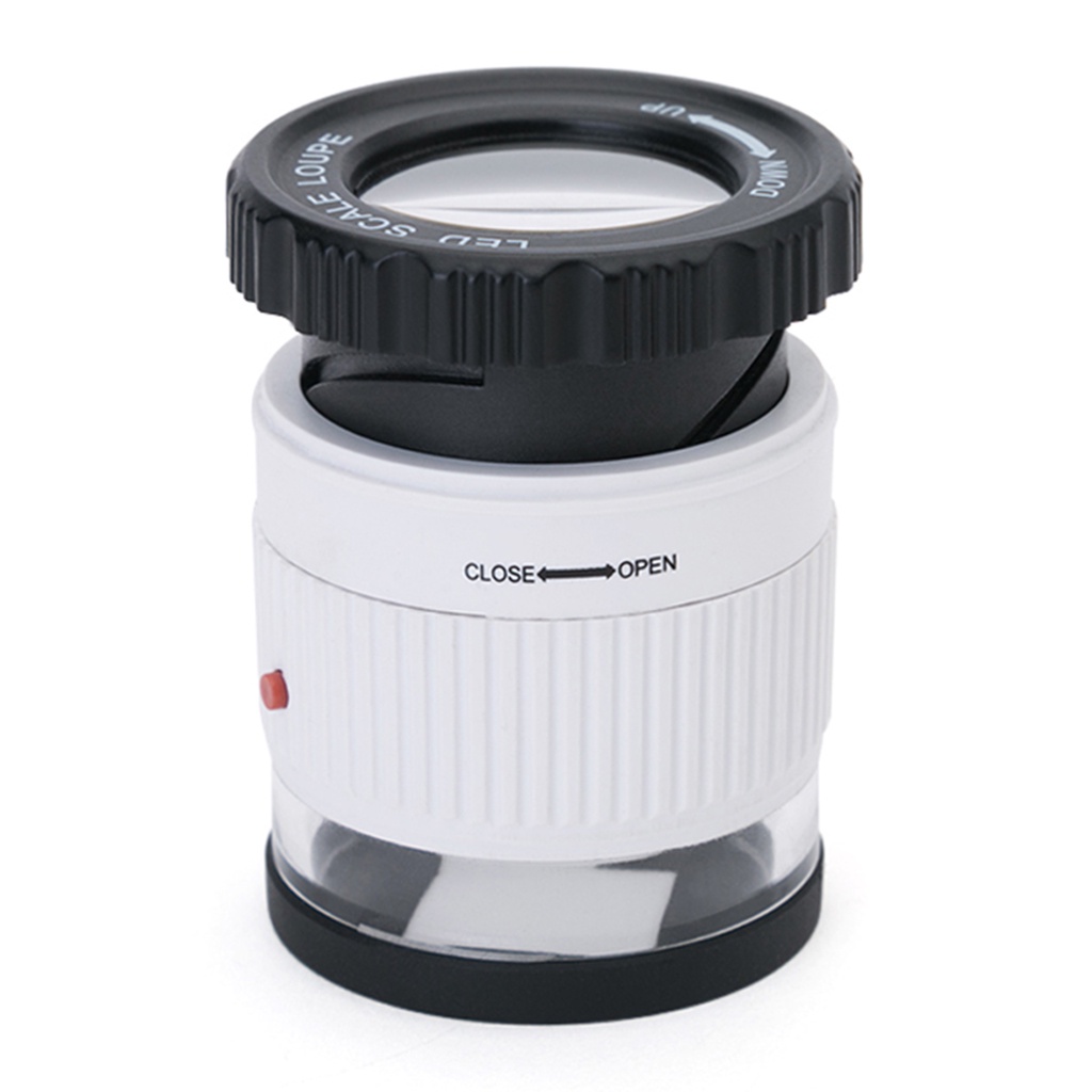 LED Scale Loupe 30X Adjustable Magnification Magnifier Metal Cylinder Type Mirror with Small Size Reading Jewelry 3 Lights UV White