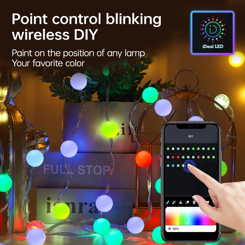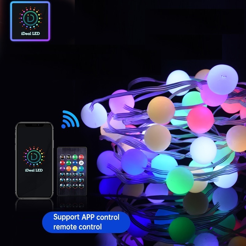 LED String Light IP67 Colorful Programmable RGBIC Round Ball String Light Addressable Individually