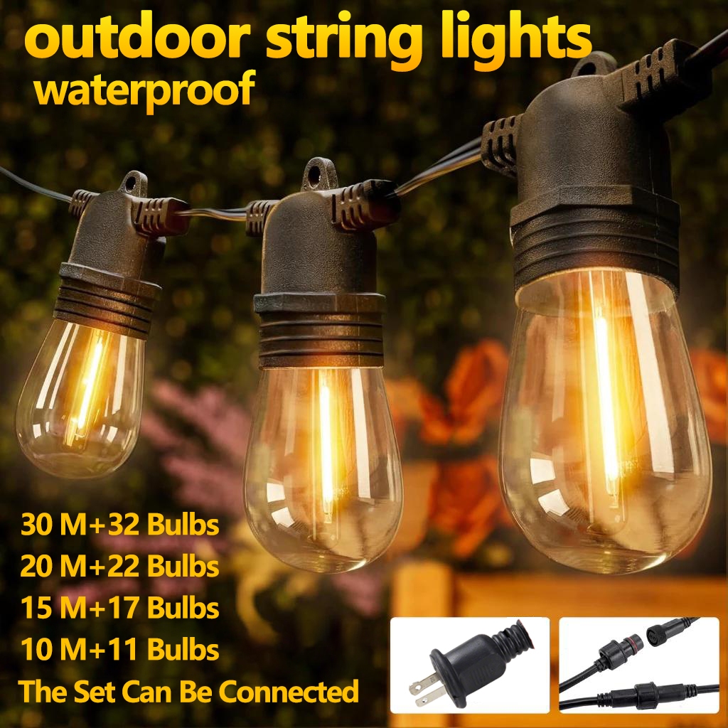 LED String Light Outdoor Waterproof Bulb light 30M/15/10/7M Decorative Lights Garden Lighting Patio