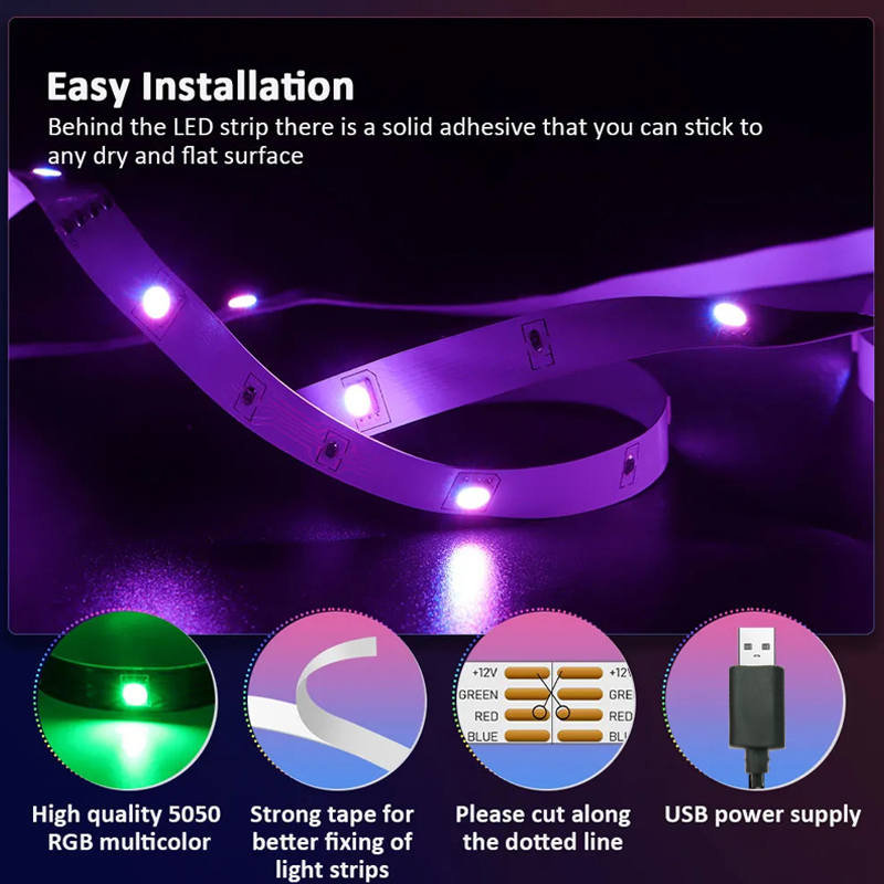 LED Strip - 5V RGB with 20-Key Remote Control, 1M/30 Lights for TV Background and Ambient Lighting