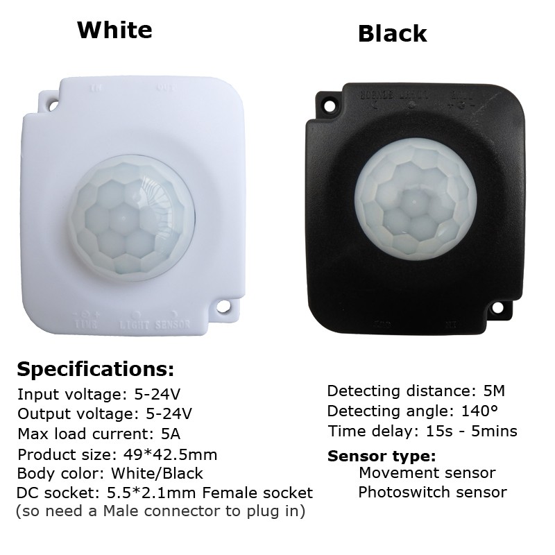 LED Strip Light Motion Sensor Switch 12V 24V 5V PIR Infrared Timer Detector