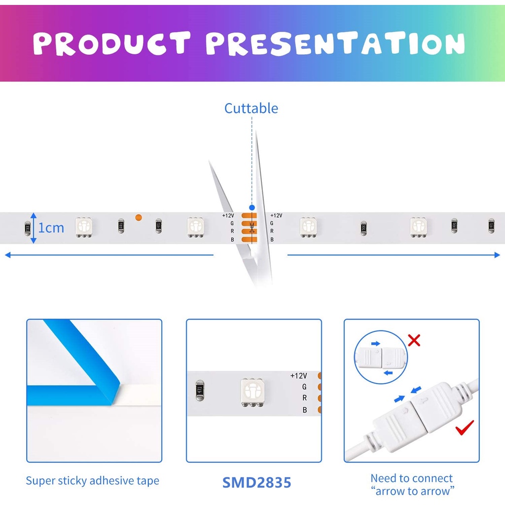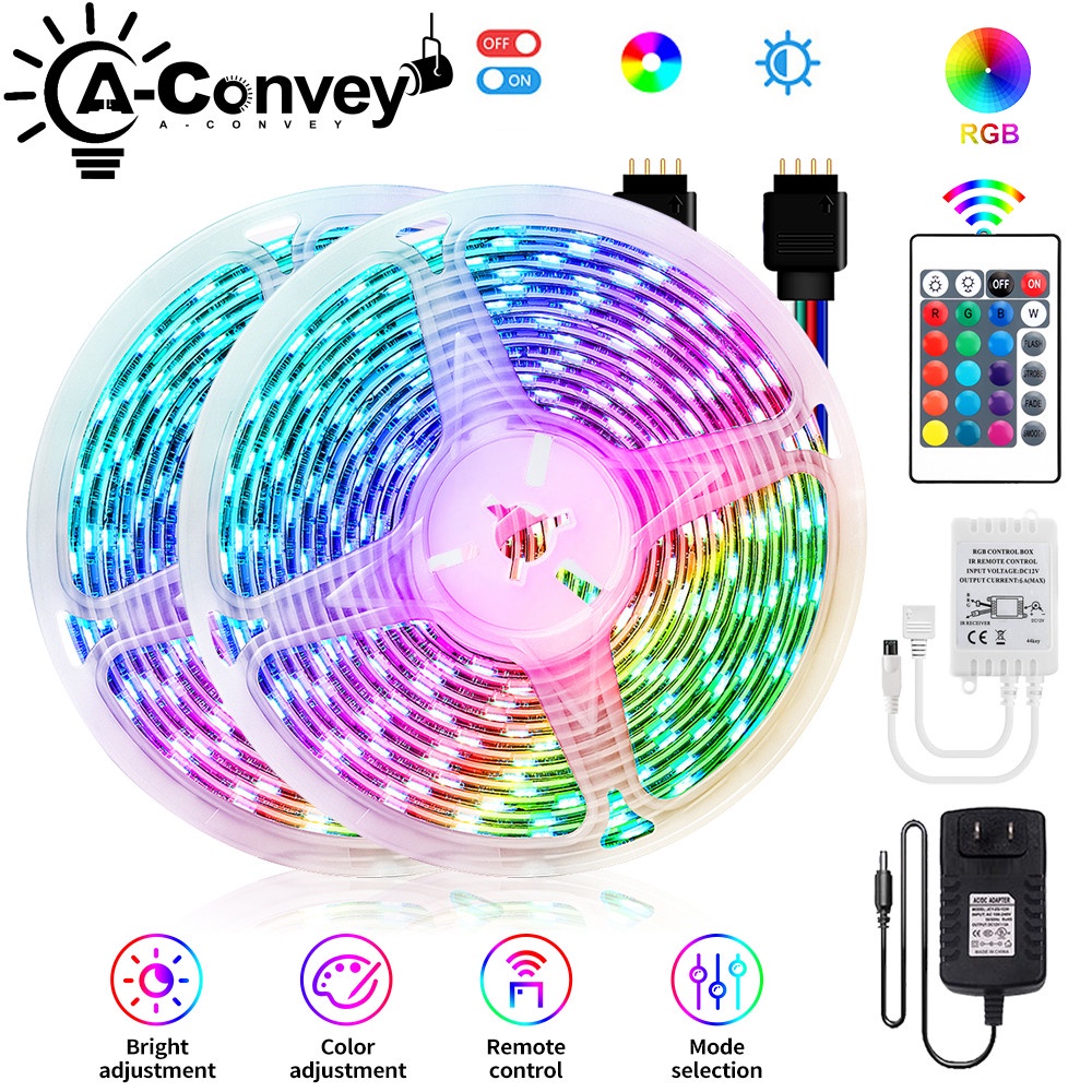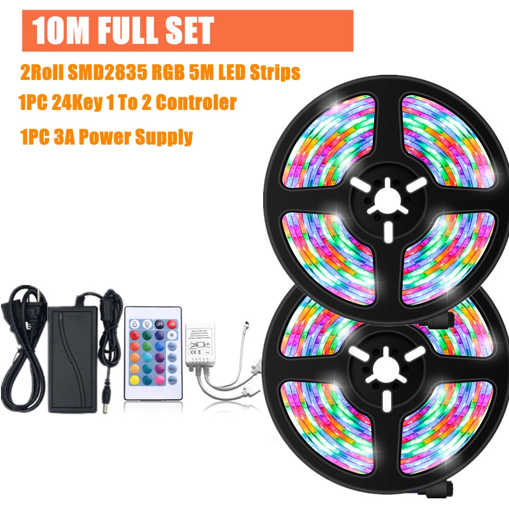 LED Strip Light RGB 2835 Flexible Ribbon 12V led strip 5M 10M 15M 20M No-Waterproof Tape Diode+24Key Control+Adapter Christmas lights