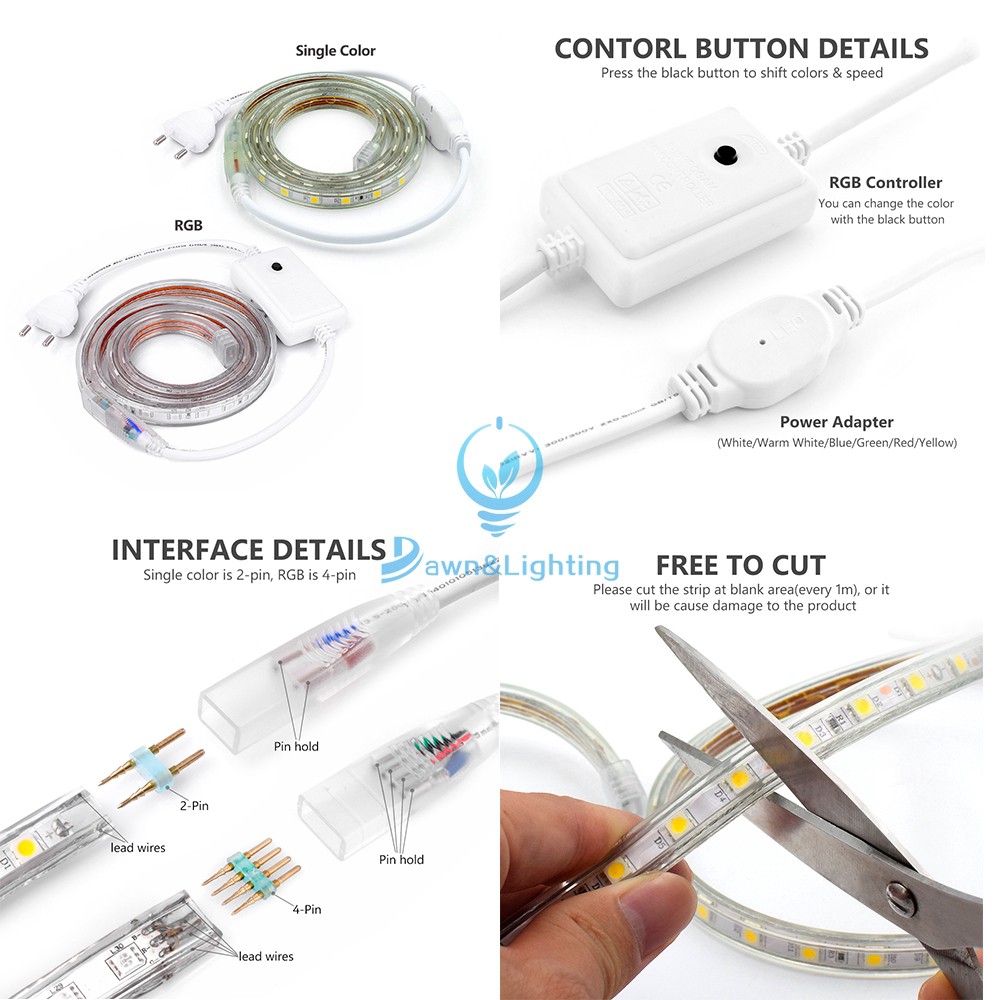 LED Strip light with remote 1M - 50M 5050 110V-220V Waterproof Flexible RGB LED light Tape AC 220V USB TV background light strip 30LEDs/M