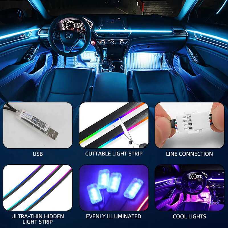 LED Symphony Ambient Lights USB Full Color Car Interior Streamer RGB LED Neon Hidden Acrylic Strip