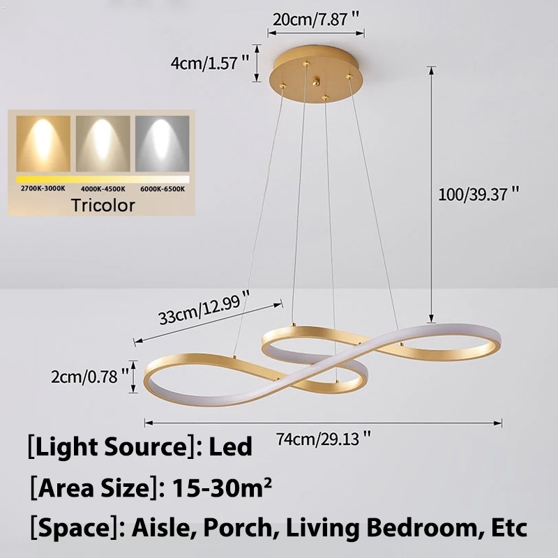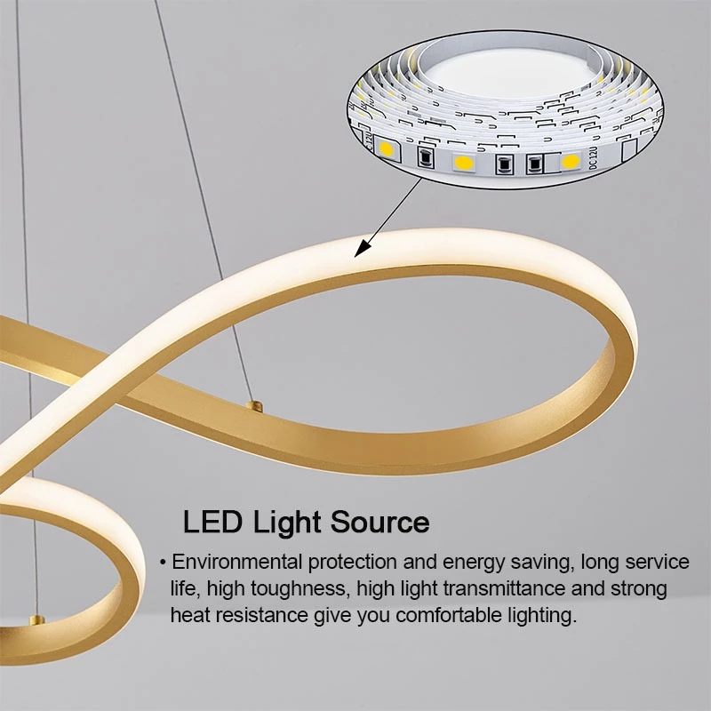 LED Tri Color Chandelier Note Style Pendant Light for Loft Living Room Bedroom Dining Table Hanging Drop Light