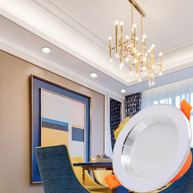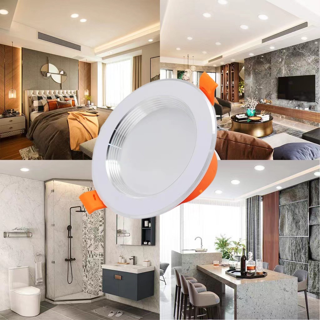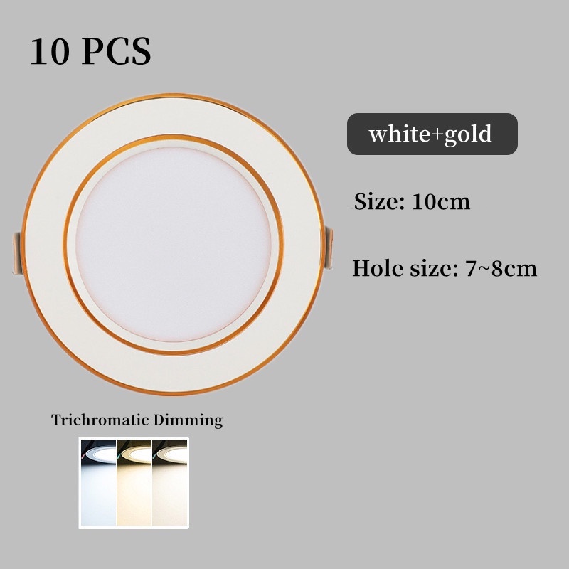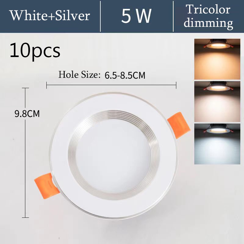 LED Tricolor Downlight Ceiling Light 5W Round Panel Ceiling Lamp Recessed Pin Light