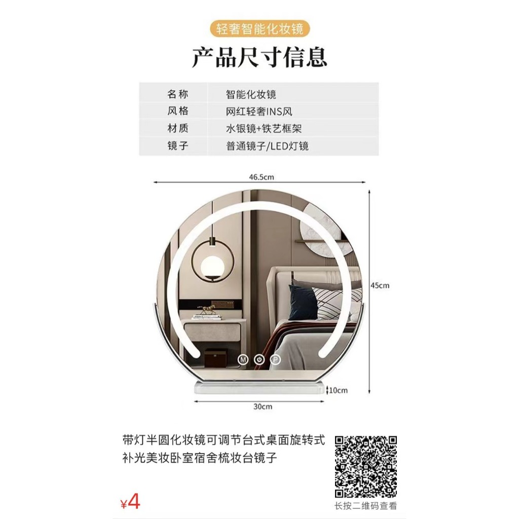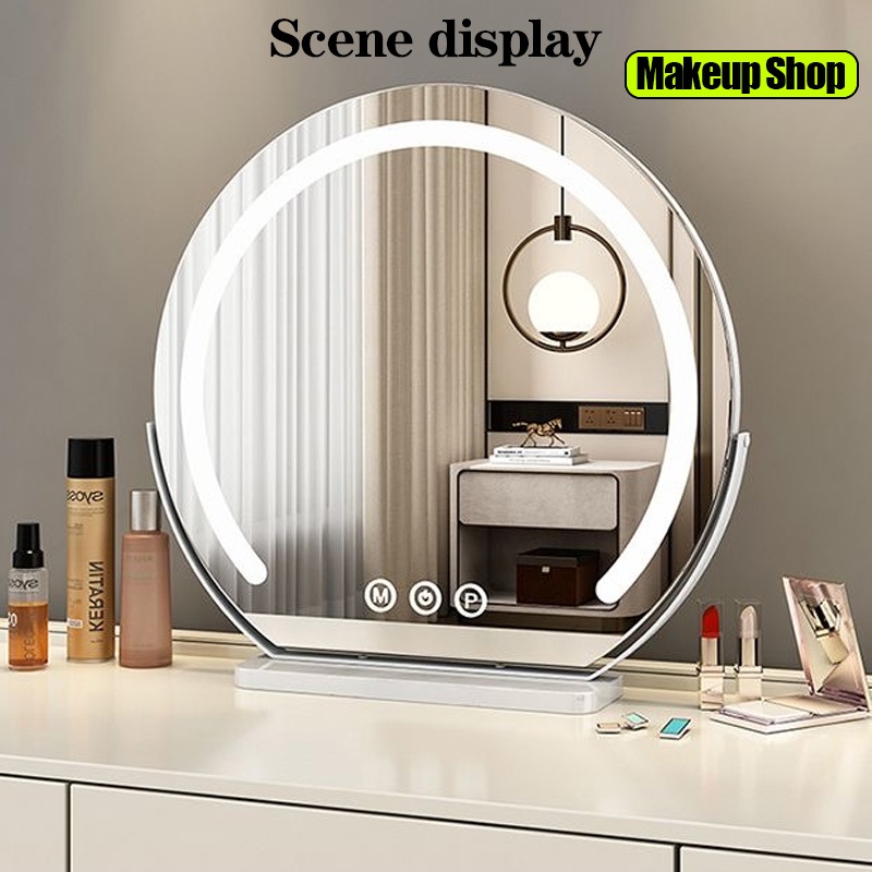 Desktop smart makeup mirror, LED round makeup mirror, household makeup mirror with LED fill light