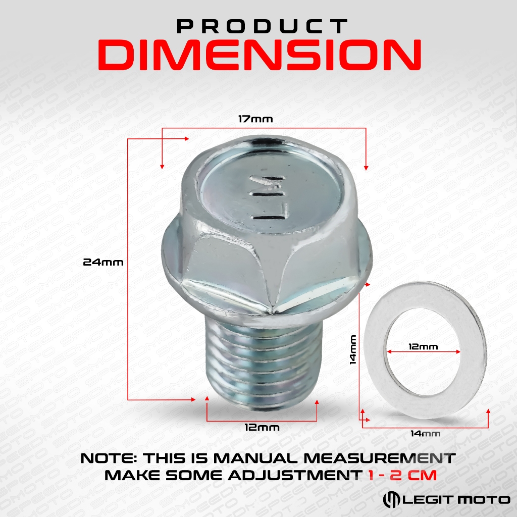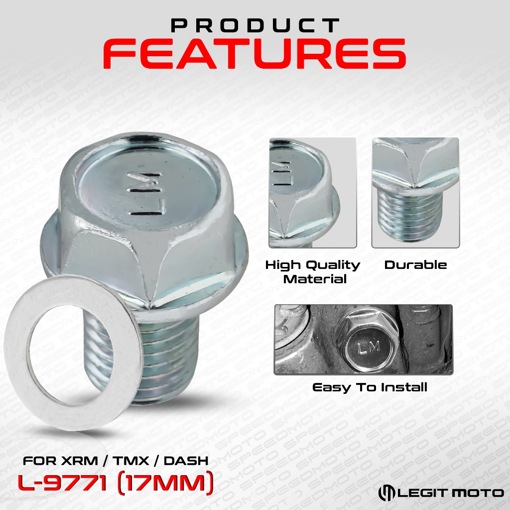 LEGITMOTO ENGINE PAN OIL DRAIN PLUG BOLT 17MM BOLT HEAD FOR XRM, TMX, DASH / MIO SPORTY 1PC
