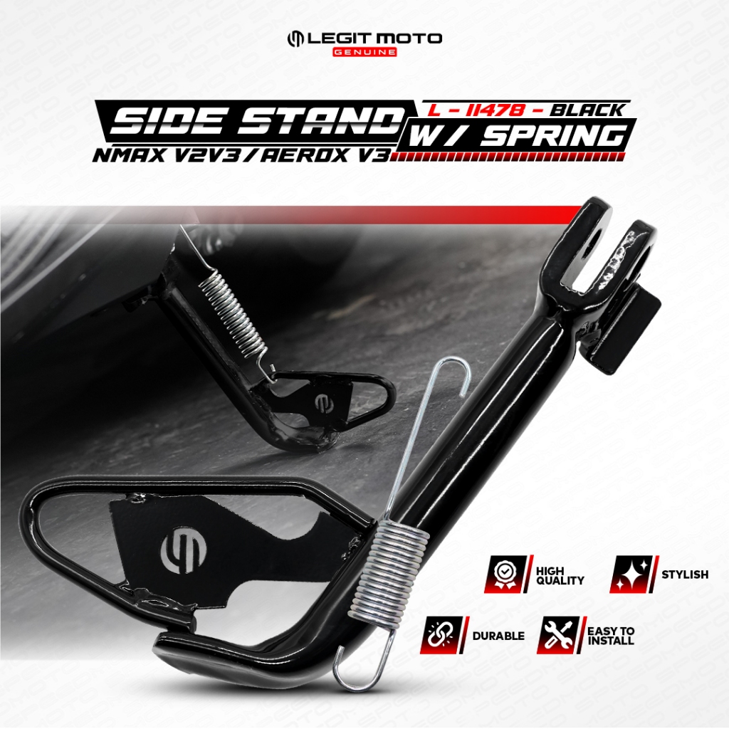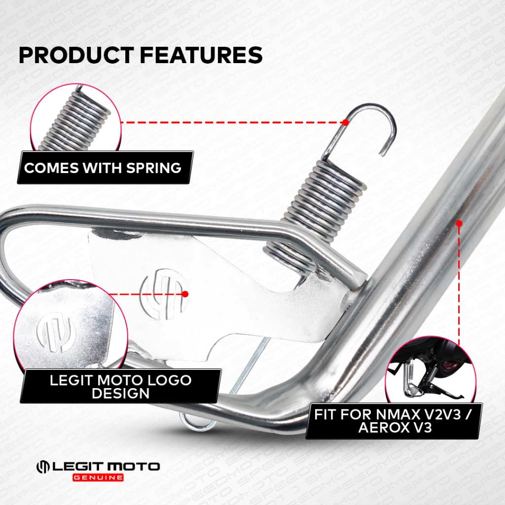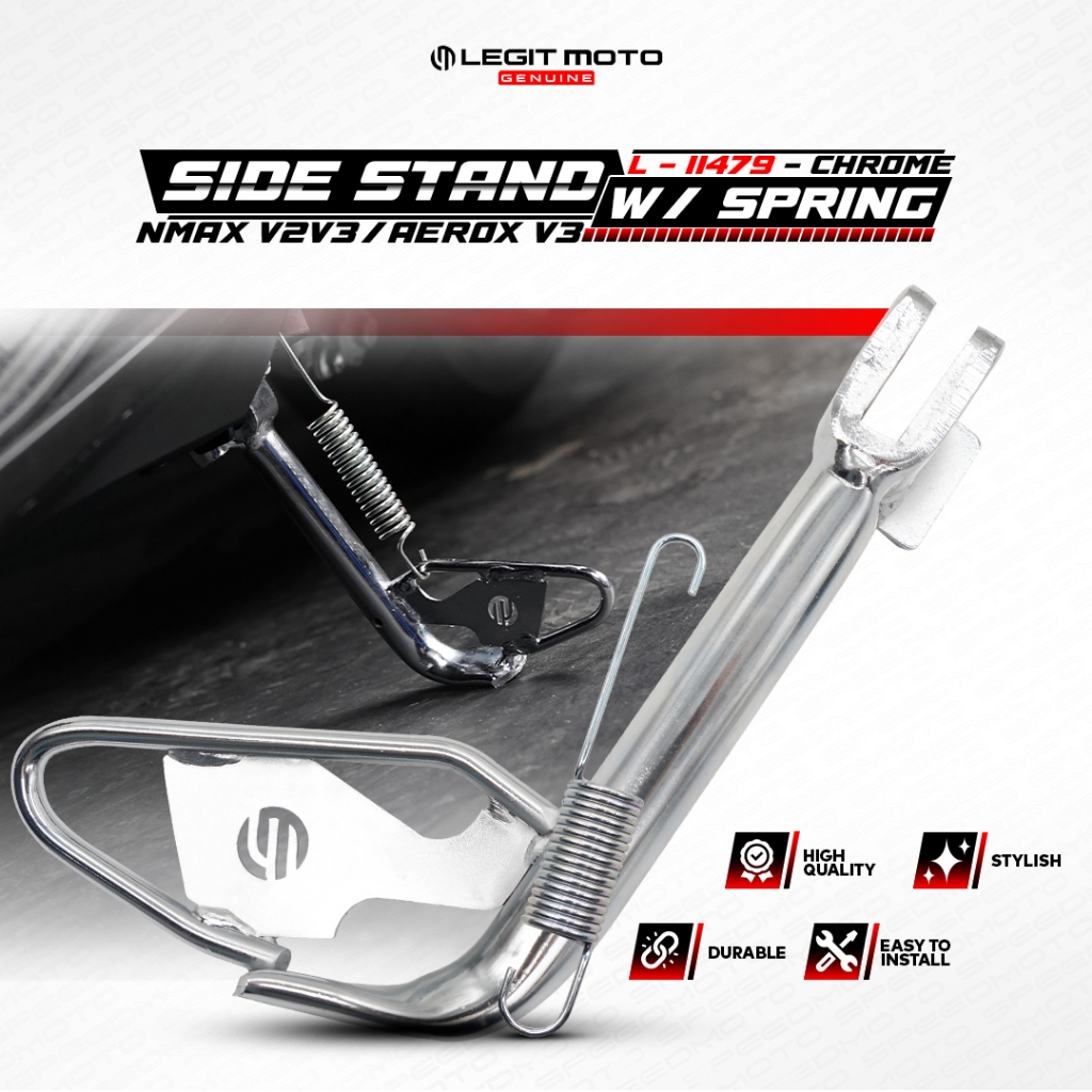 LEGITMOTO NMAX V3 V2 / AEROX V3 SIDE STAND ASSY WITH SPRING CHROME LG-11479 SIDE KICKSTAND