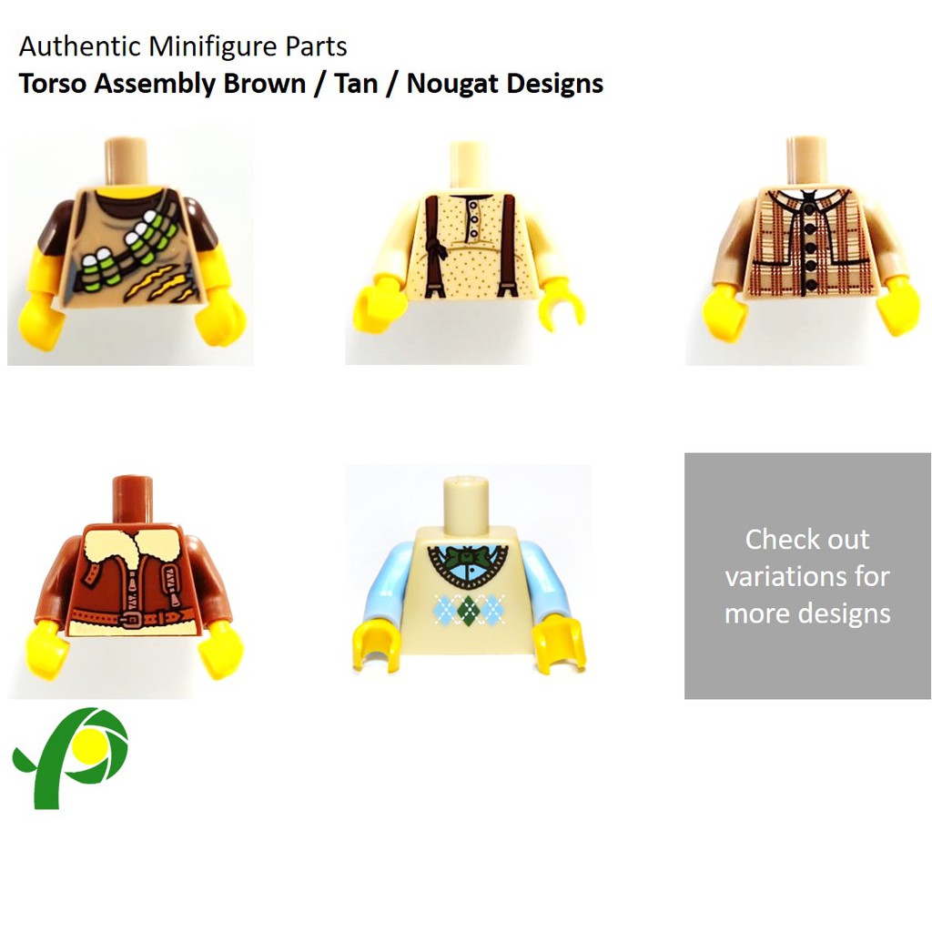 Minifigure Parts Torso Assembly Brown Tan Nougat Design Minifig