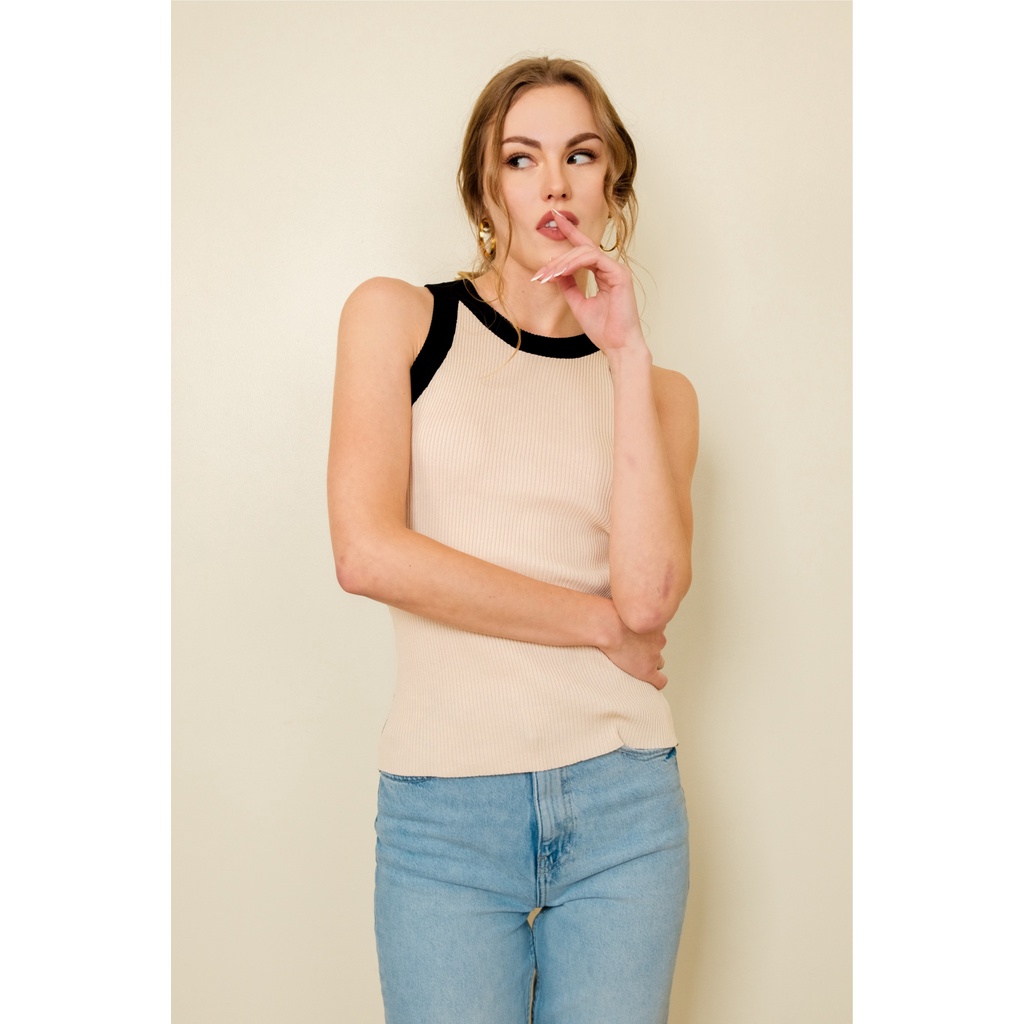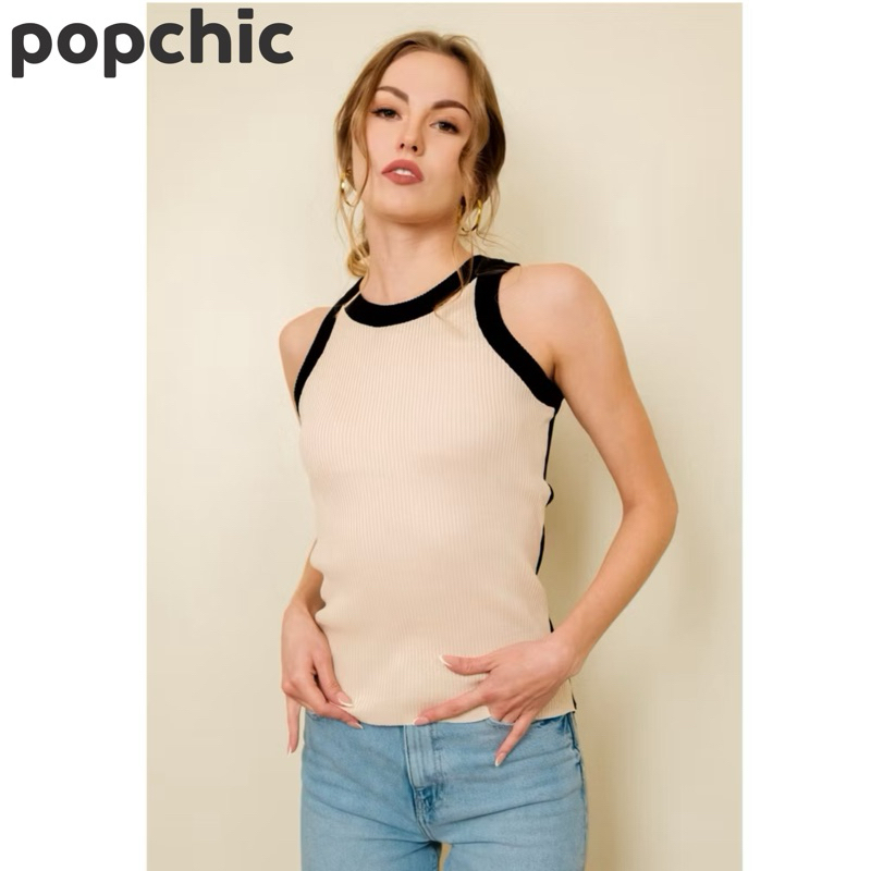 LEI TOP IN BLACK/BEIGE [POPCHIC]