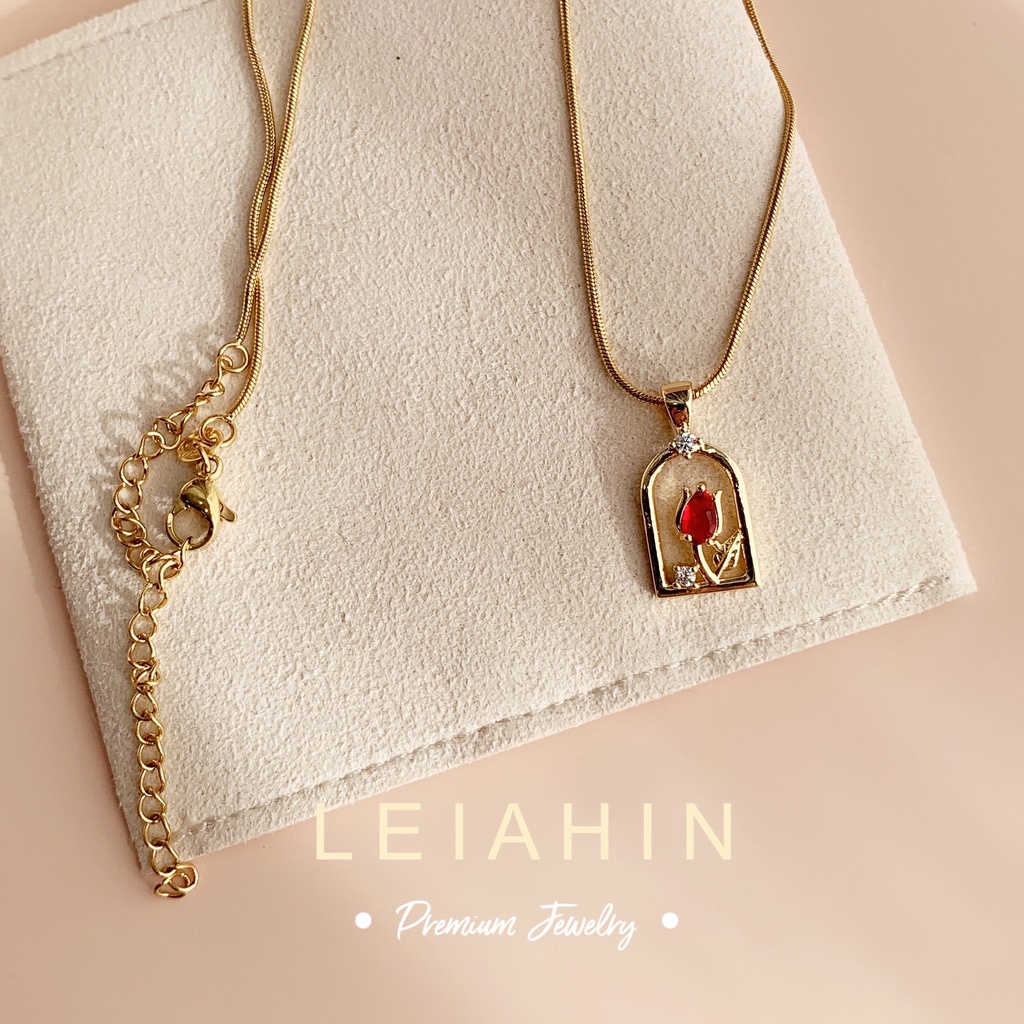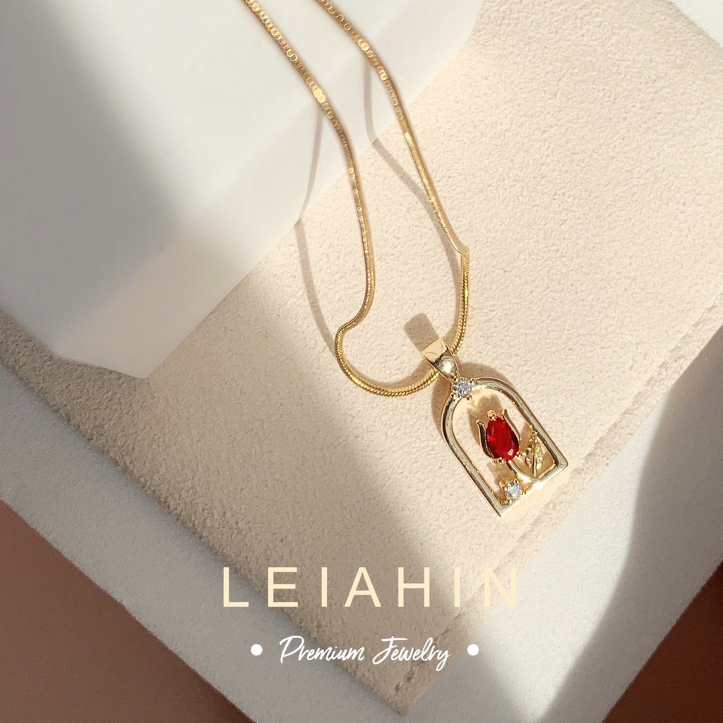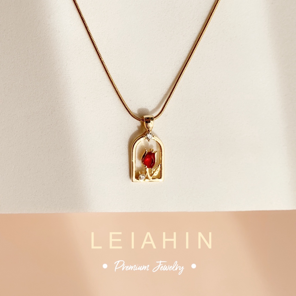 LEIAHIN Tulip Necklace 18K Gold Fashion Tala Flower Pendant Necklaces For Women Cubic Zirconia Red Rose Choker Hypoallergenic Accessories With Freebie