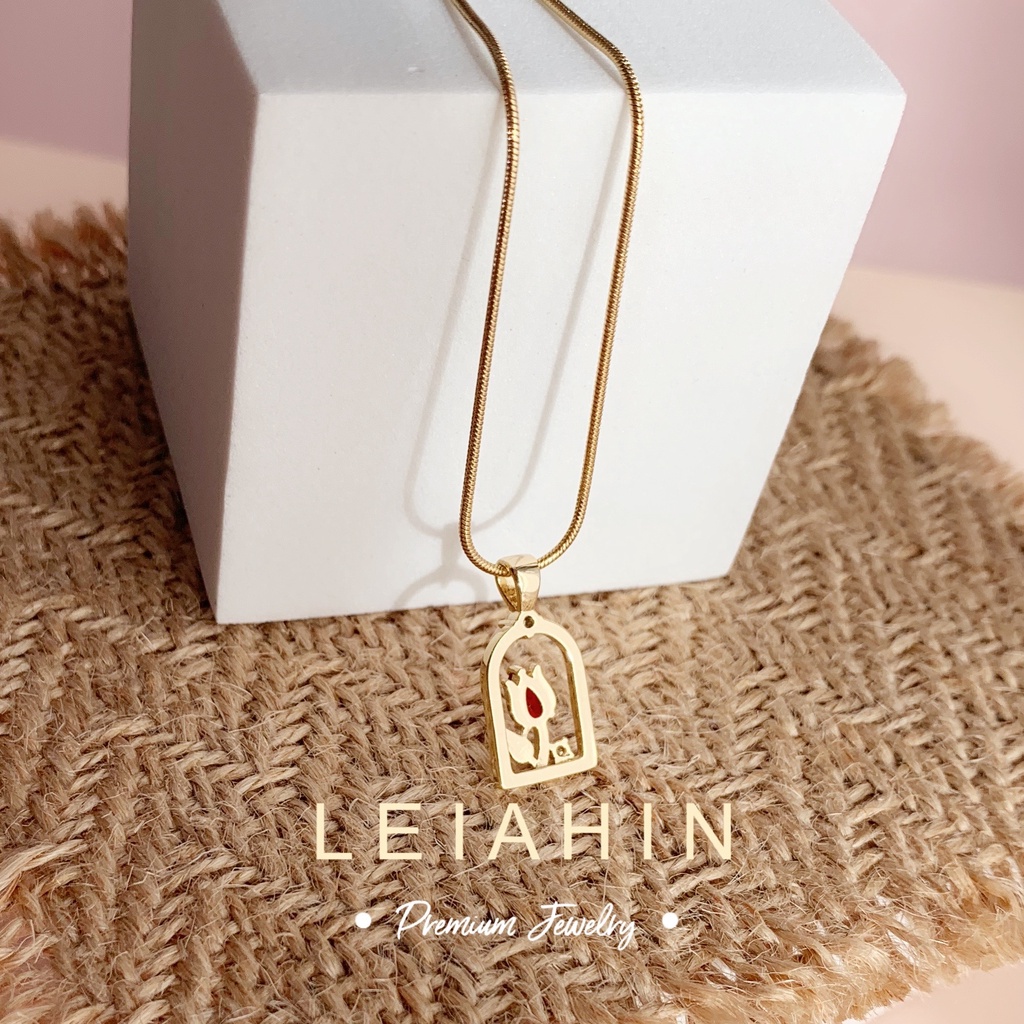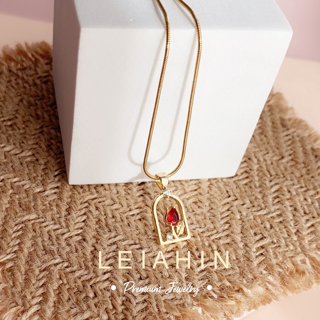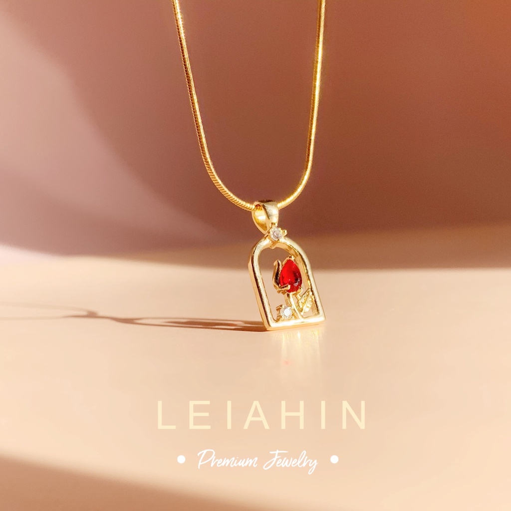 LEIAHIN Tulip Necklace 18K Gold Fashion Tala Flower Pendant Necklaces For Women Cubic Zirconia Red Rose Choker Hypoallergenic Accessories With Freebie