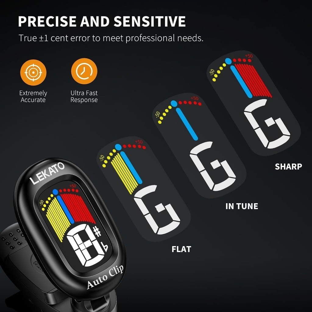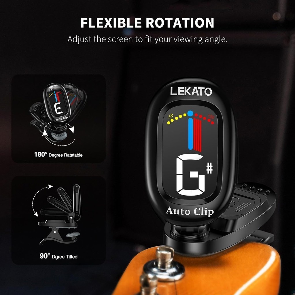 LEKATO Auto Clip Chromatic Tuner Guitar Tuner with Color LCD Display for Bass Guitar Ukulele Violin