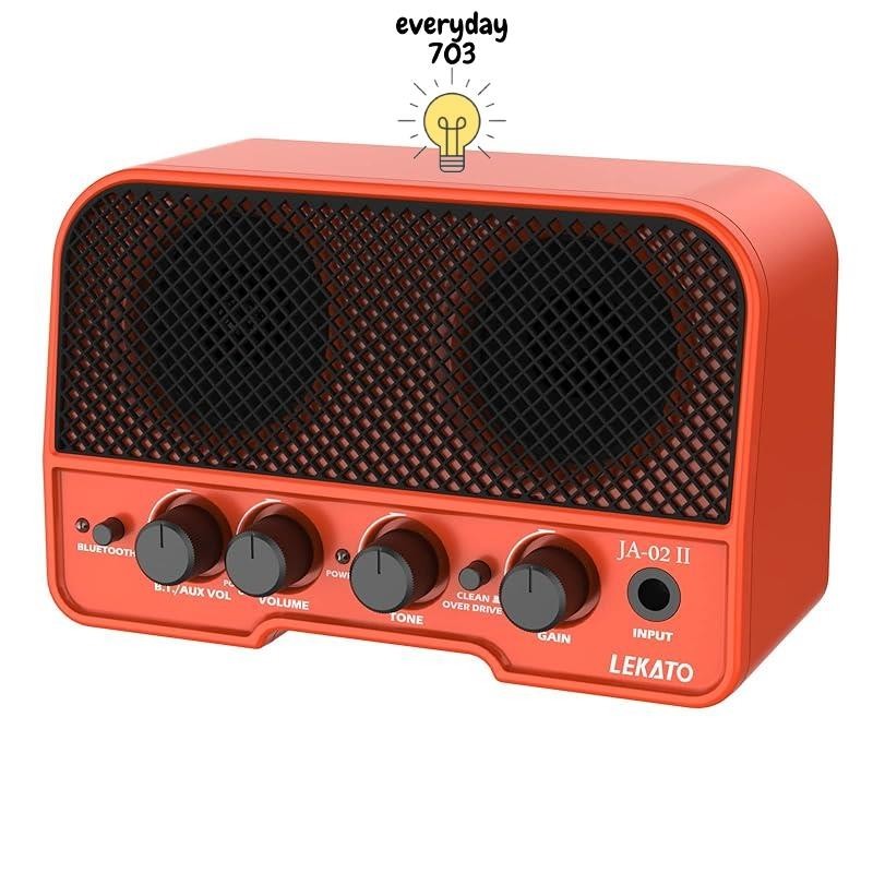 LEKATO Mini Guitar Amp Electric Guitar Amp 2 sound channels 5W Bluetooth function with headphone jack Volume control Small size for home practice Rechargeable with Japanese instruction manual (Orange)