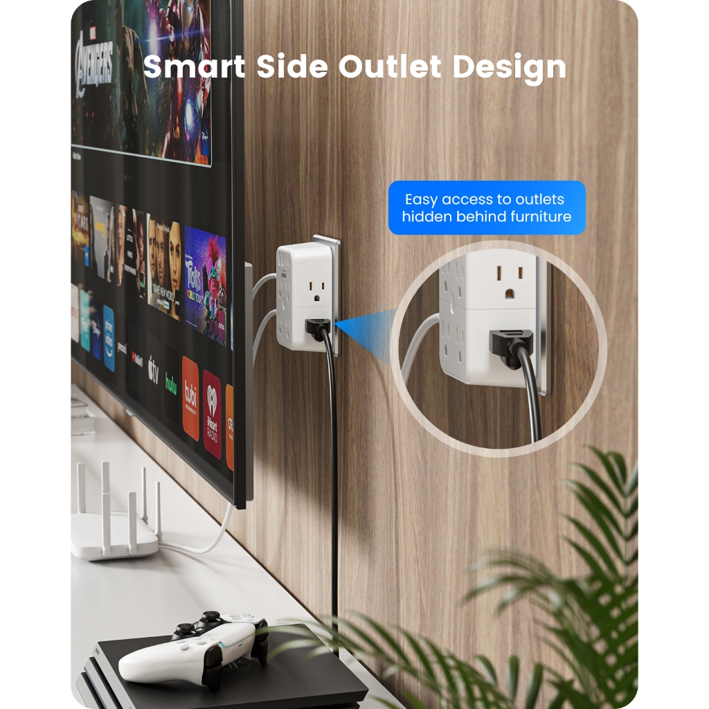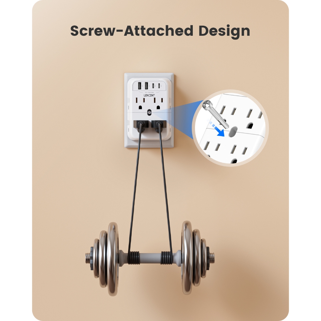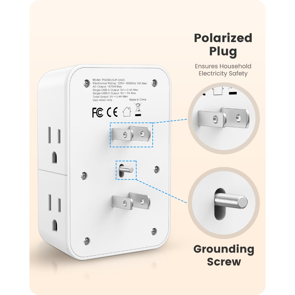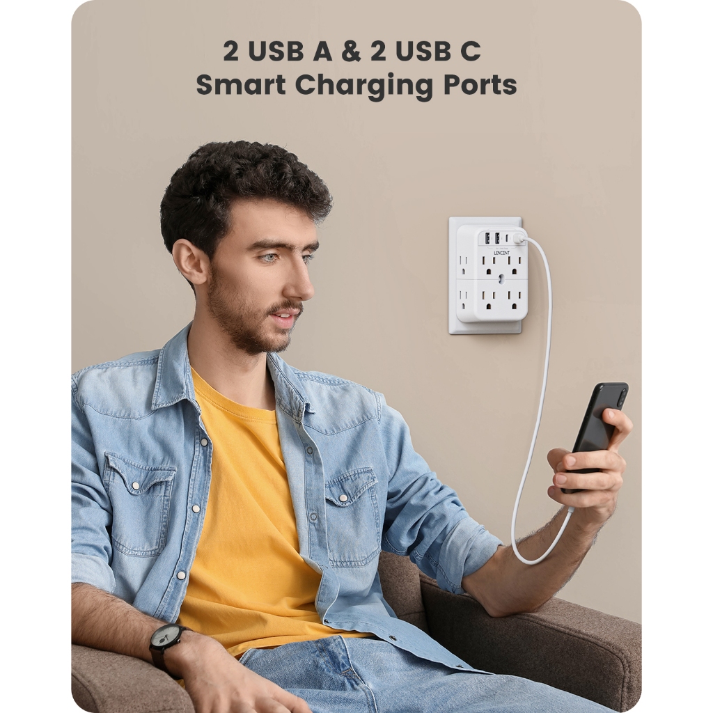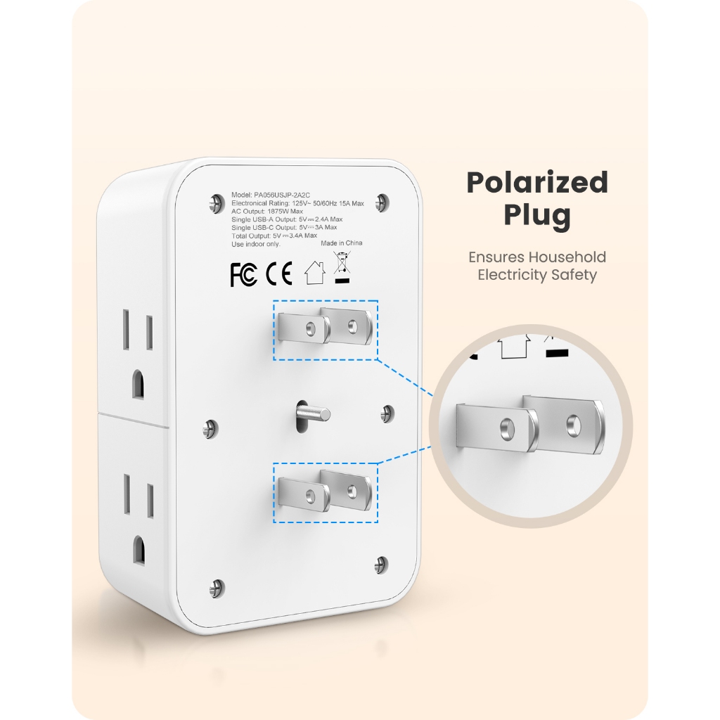 LENCENT 2 Prong Power Strip, 3 to 2 Prong Outlet Adapter, 2 Type C&2 USB, Polarized Plug, 3-Sided 12 Outlets Wide Spaced Extender, Wall Tap Splitter for Non-Grounded Outlets in Old