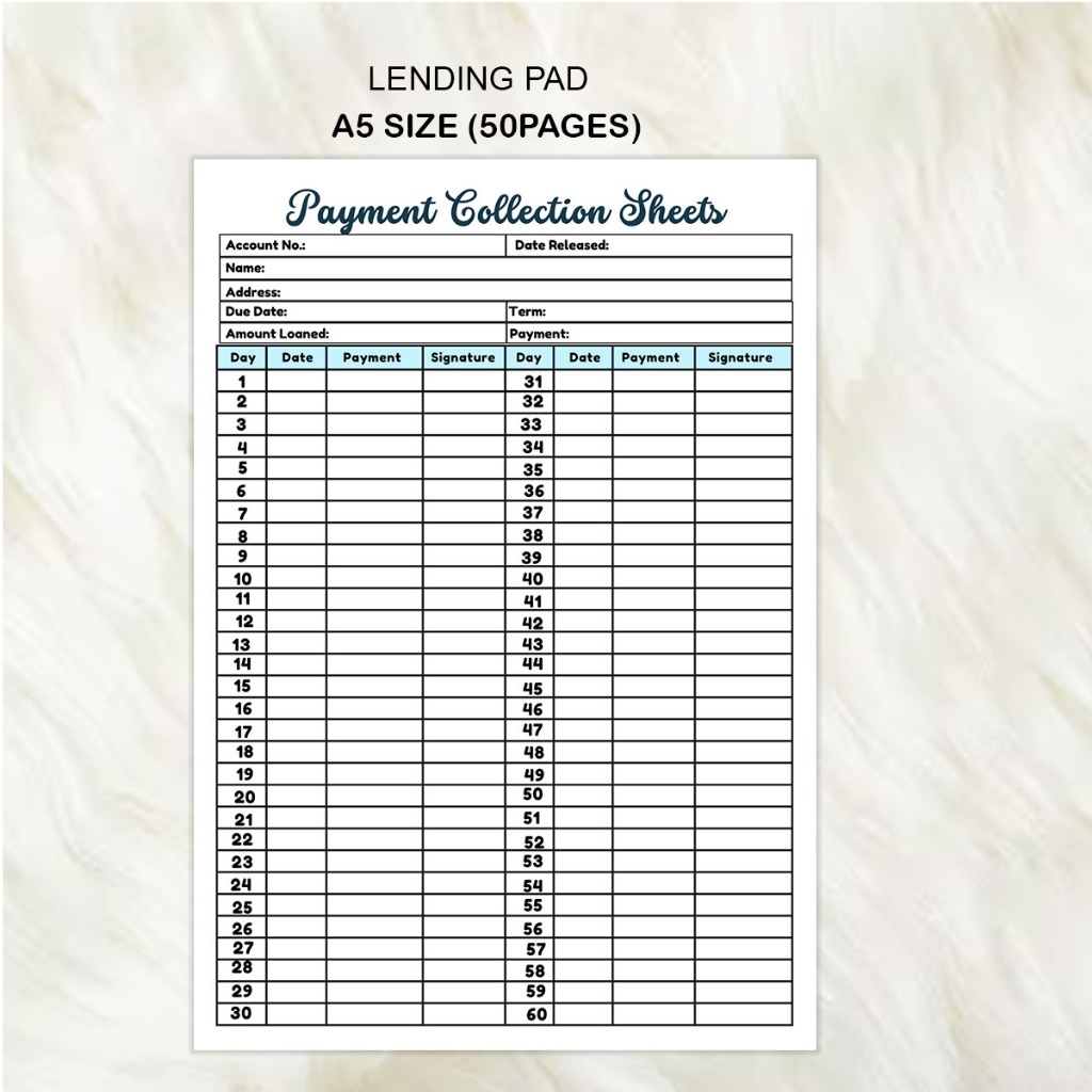 LENDING RECORD BOOKLET/PAD A5 SIZE