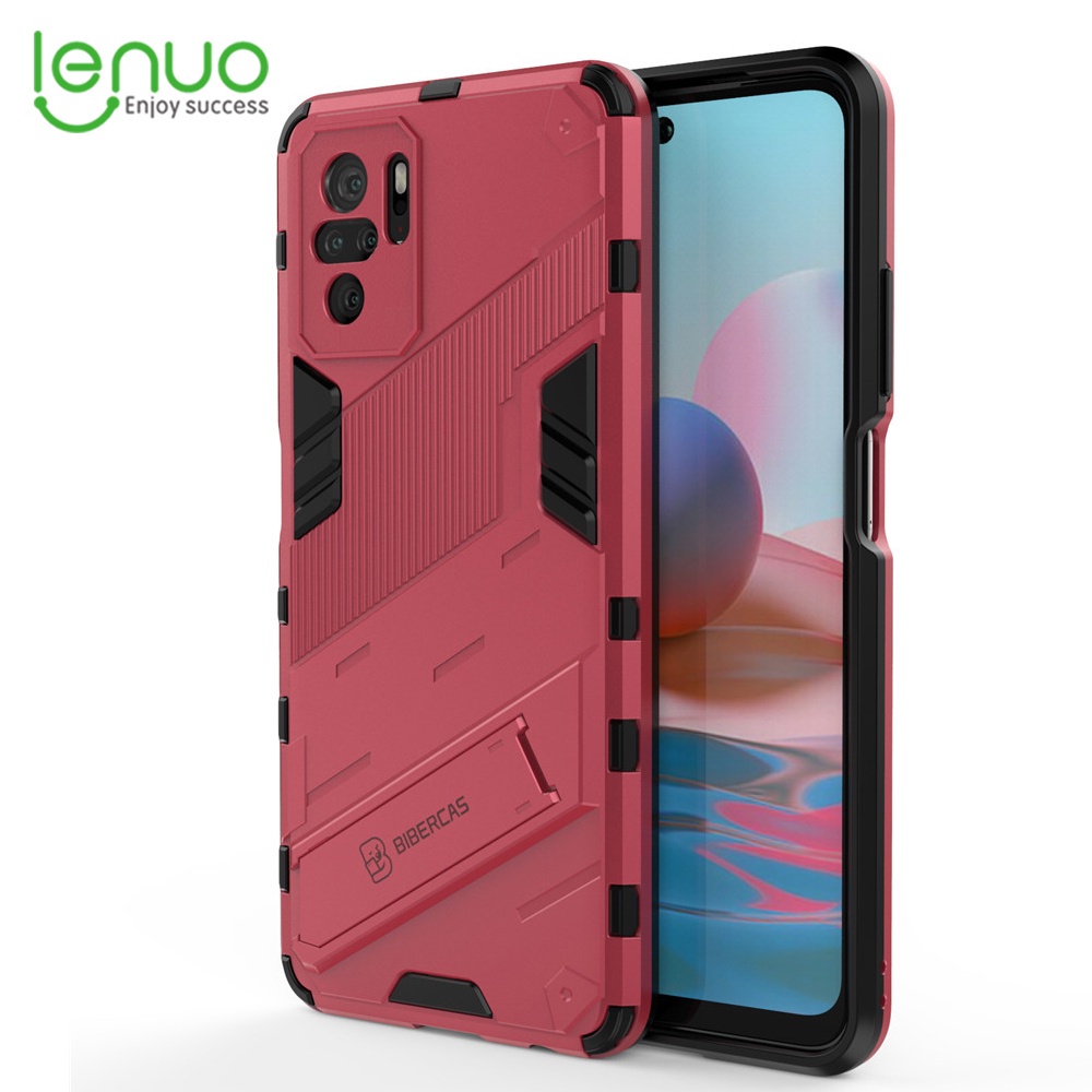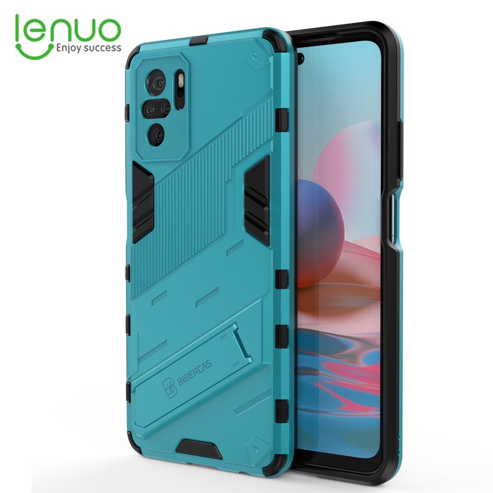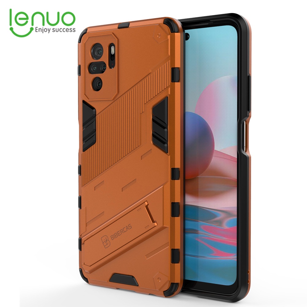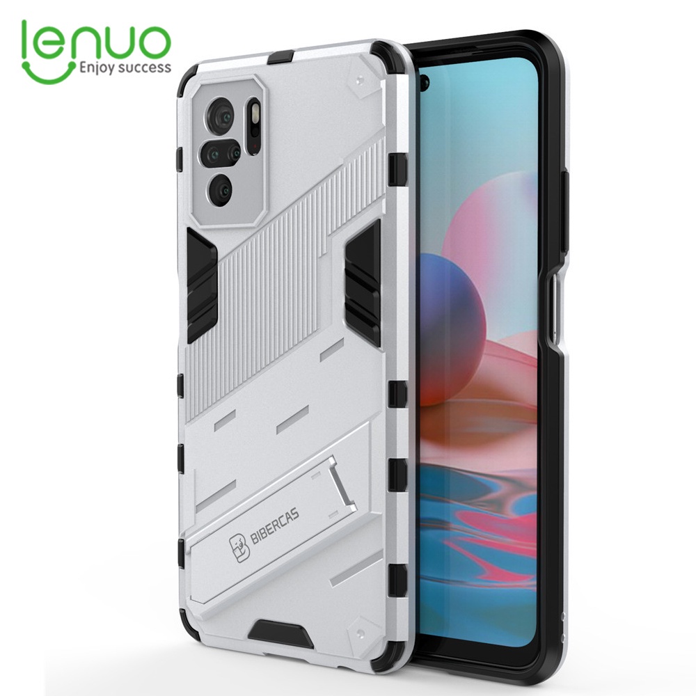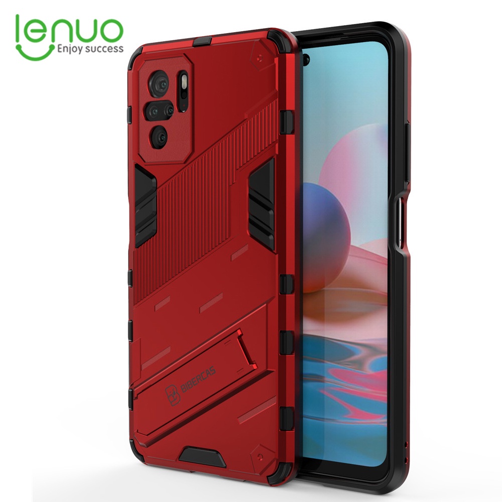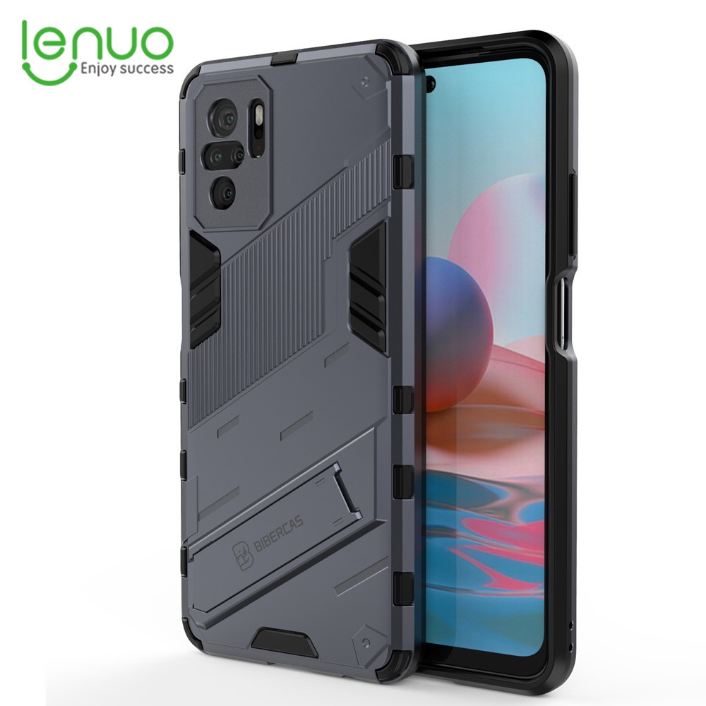 LENUO Case Shockproof Phone Back Cover With Holder Punk Casing For Xiaomi Redmi Note 10 5g 10 4g 10s 10 Pro Max 9s 9 Pro Max