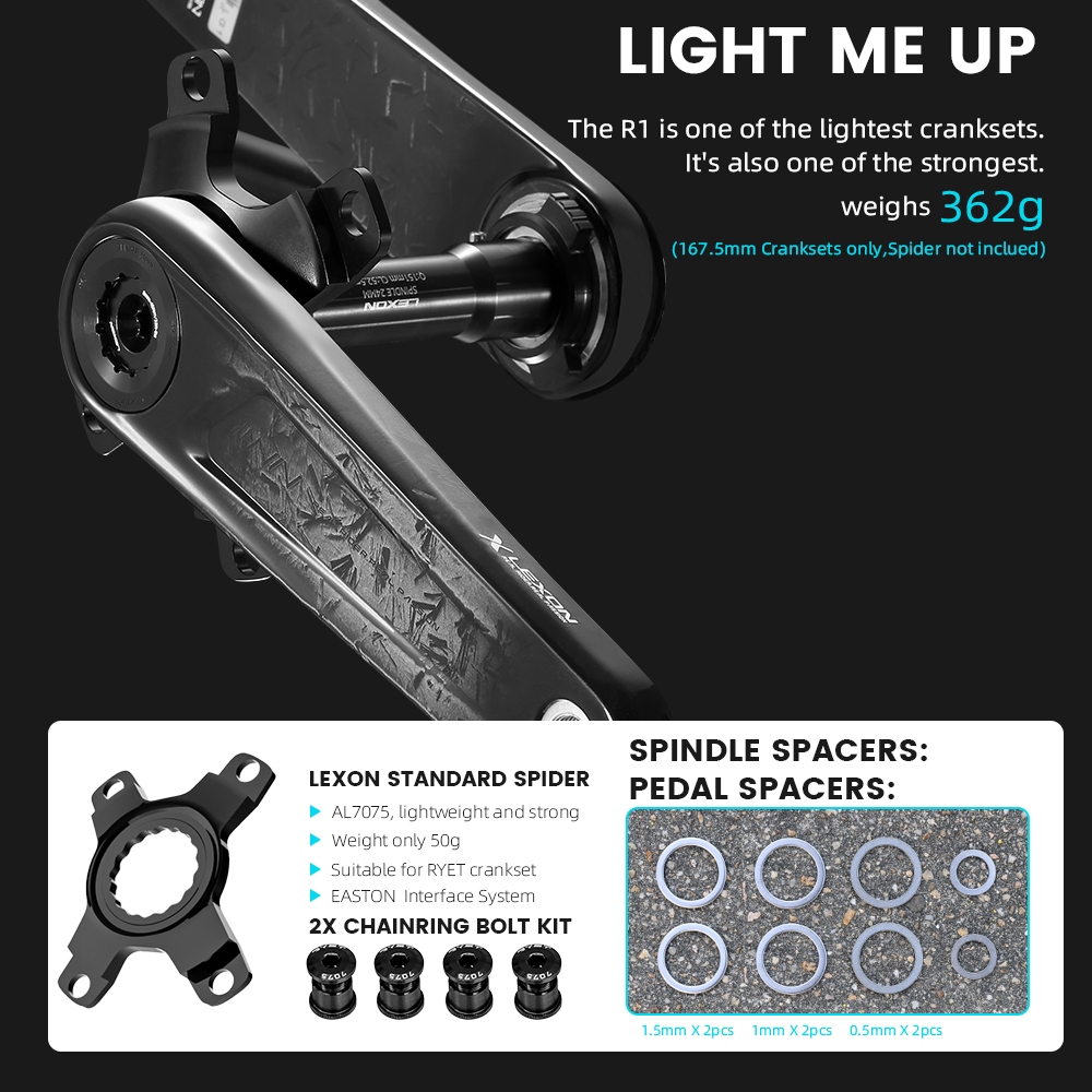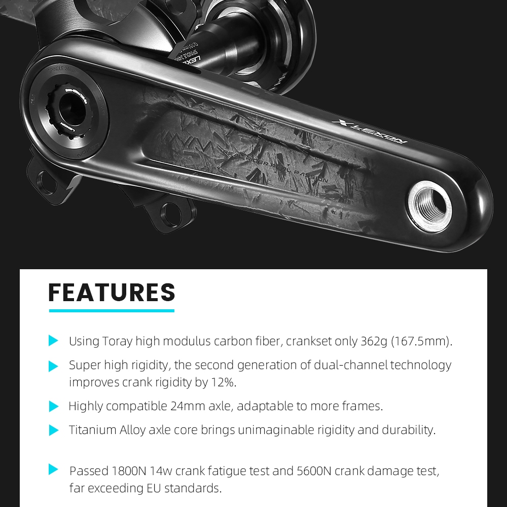 LEXON Road Full Carbon Cranksets Superlight Bicycle Cranks 411g 24mm Titanium Spindle 162.5/165/167.5/170/172.5/175MM Cycling Parts