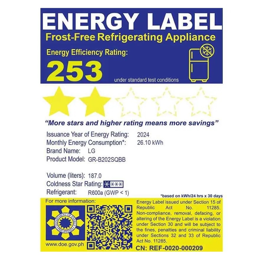 LG 7.2cuft Smart Inverter Two Door Refrigerator GRB202SQBB