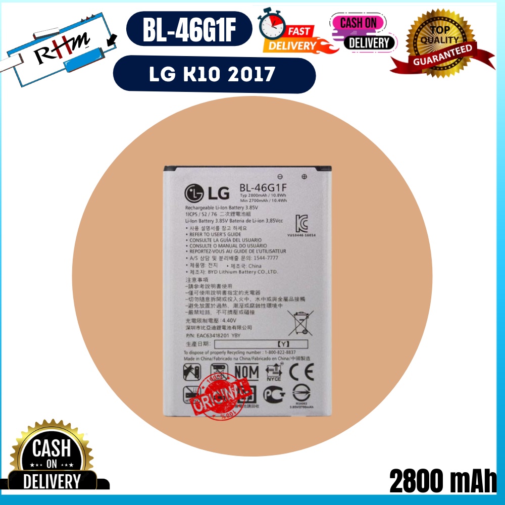 LG K10 2017 Battery, Model BL-46G1F 2800 mAh, Original High Quality Li-ion Battery
