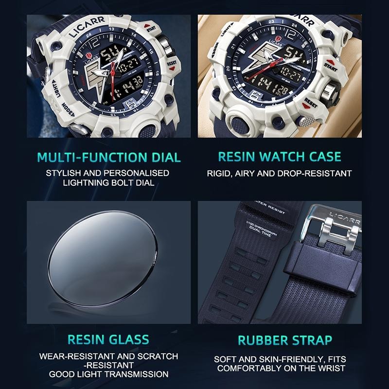 LICARR Brand Fashion Men's Watch Casual Analog-Digital Sports Waterproof Quartz Watches Stopwatch 9528