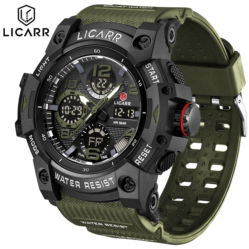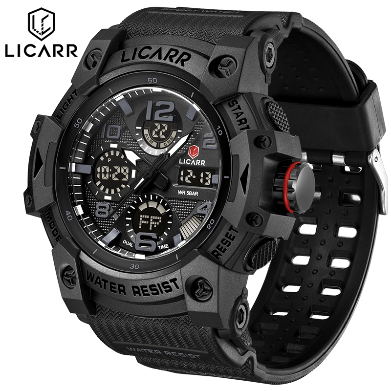 LICARR Brand Watches Dual Display Waterproof Trendy Sporty Cool Men's Watch Date Alarm Luminous Countdown 9540