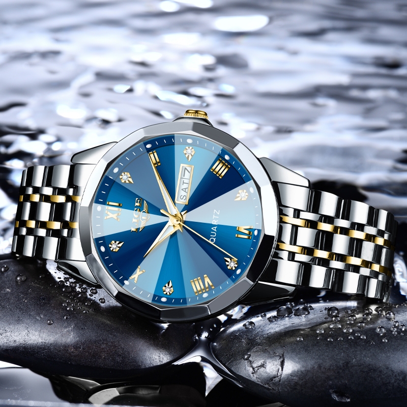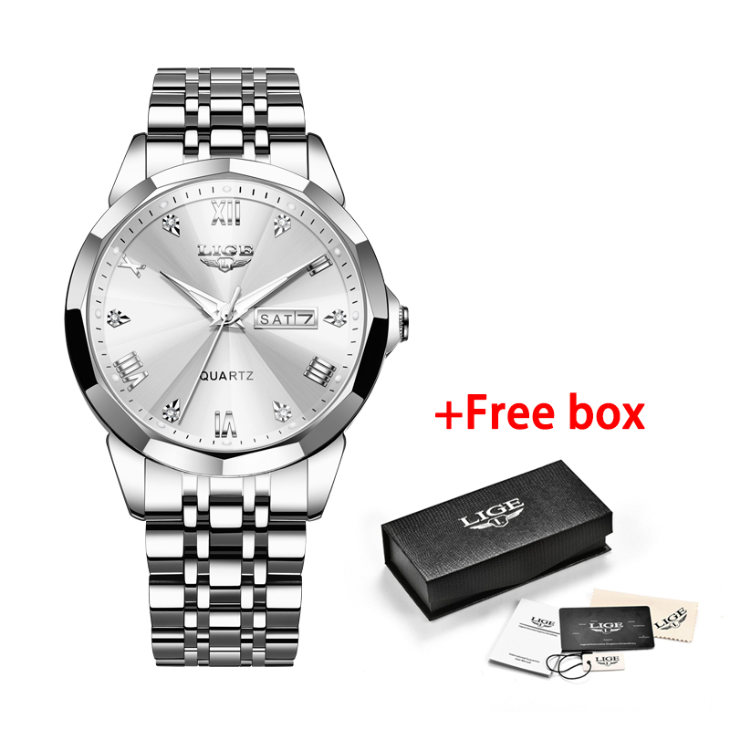 LIGE Fashion Watch Men Original Quartz Sport Waterproof Stainless Luminous Full Calendar Wrist Relo Male With Box