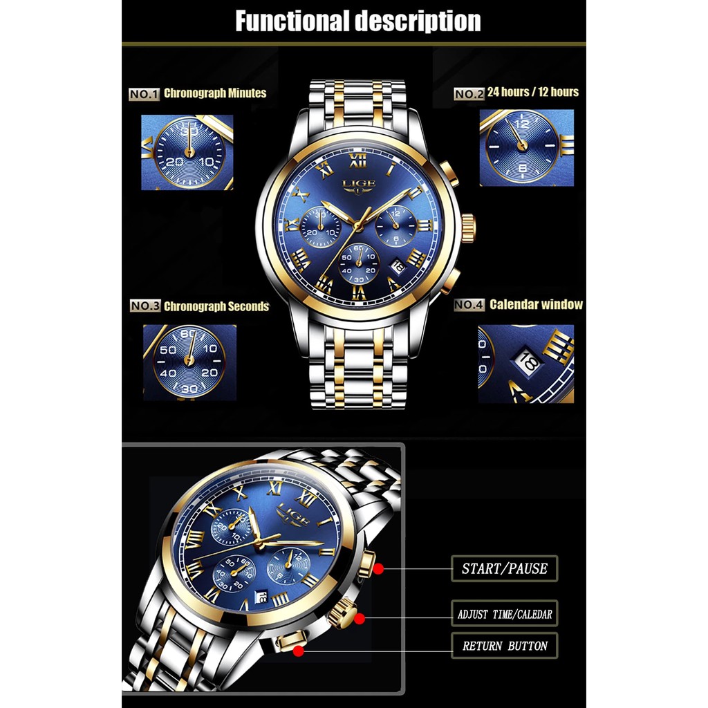 (Fast shipping)LIGE Watch For Men Original Waterproof Stainless steel Wrist Watch Quartz Watch For Men With Box Relo