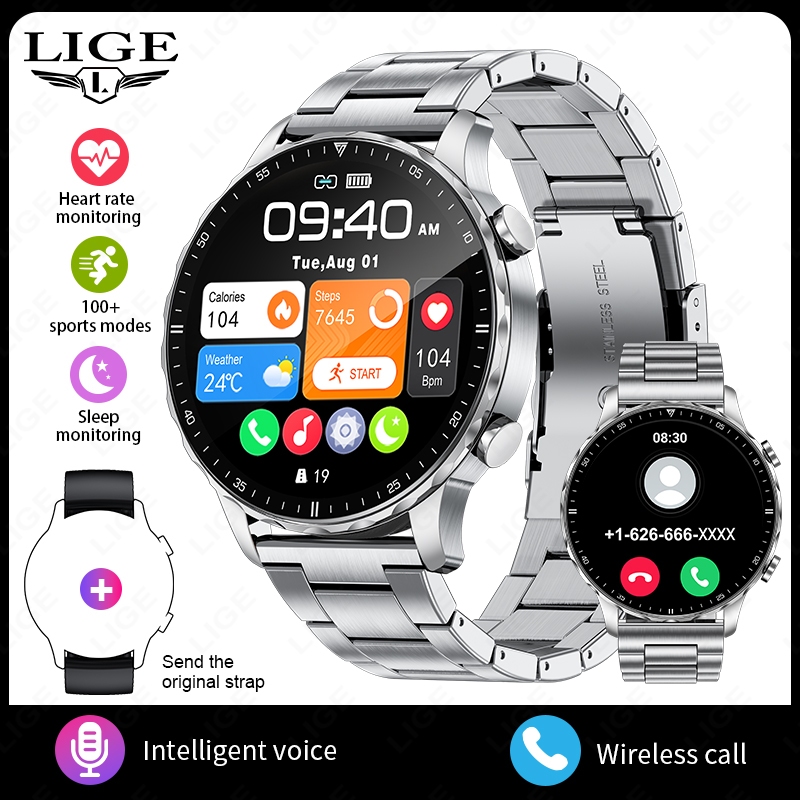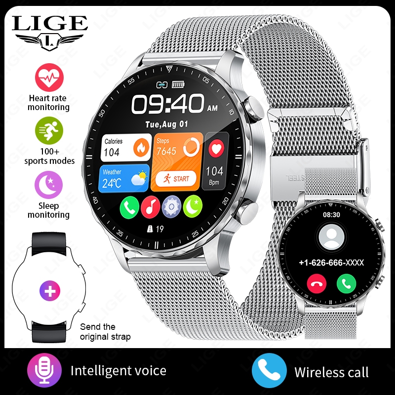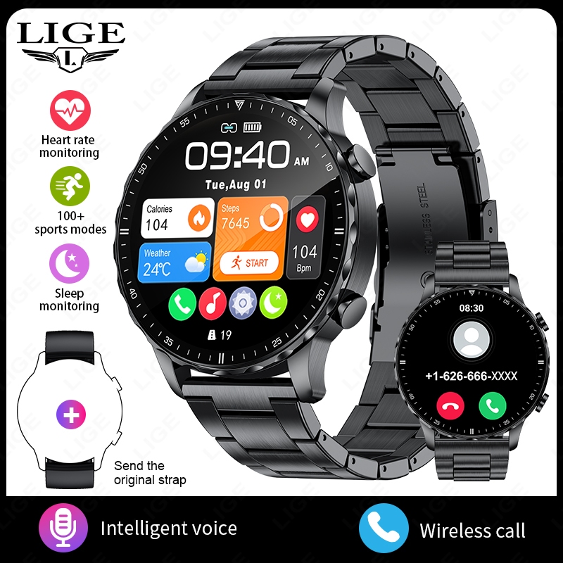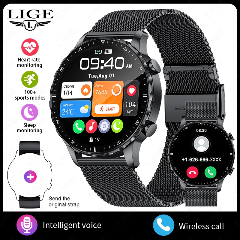 LIGE Smart Watch Original Men Blood Oxygen Health Monitor Watches AI Voice Assistant Bluetooth Call Sports Smartwatch