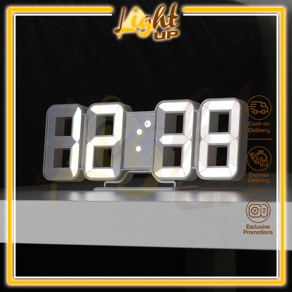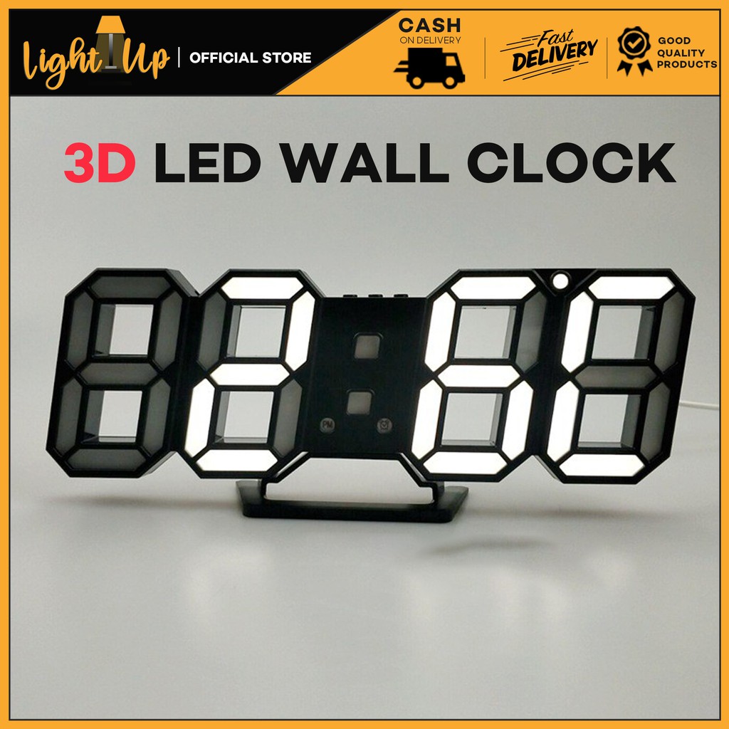 LIGHT UP 3D LED Table Desk Night Wall Clock 8 Shaped LED Display Alarm Clock