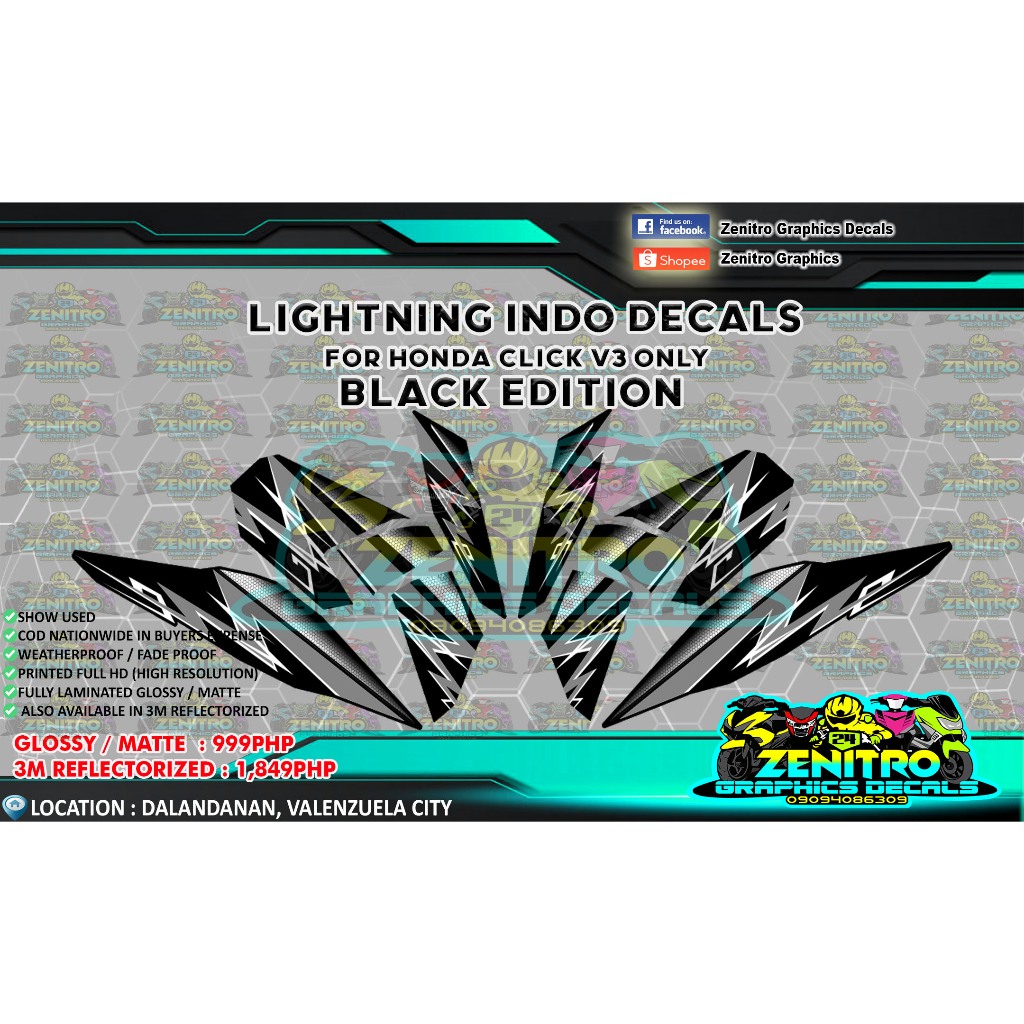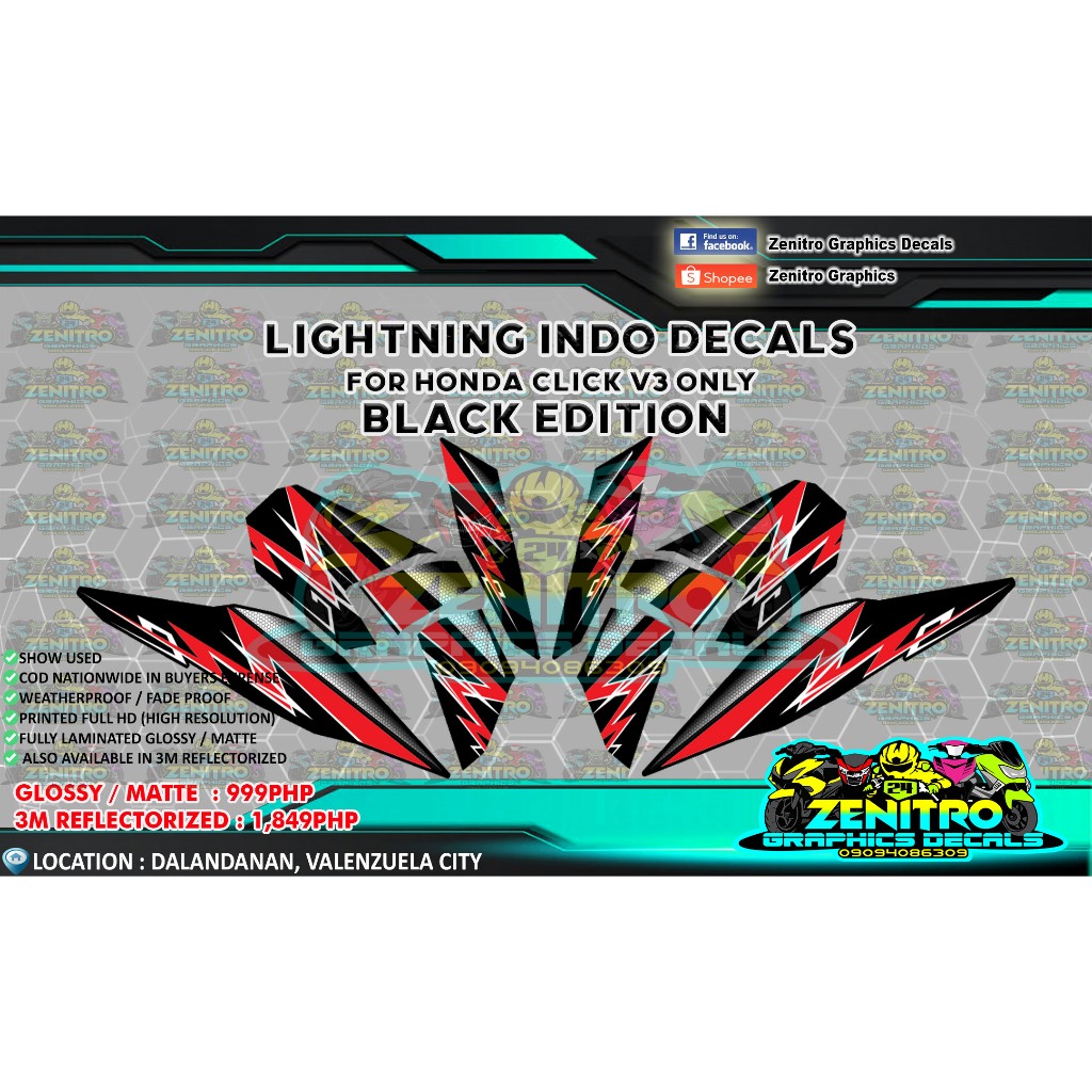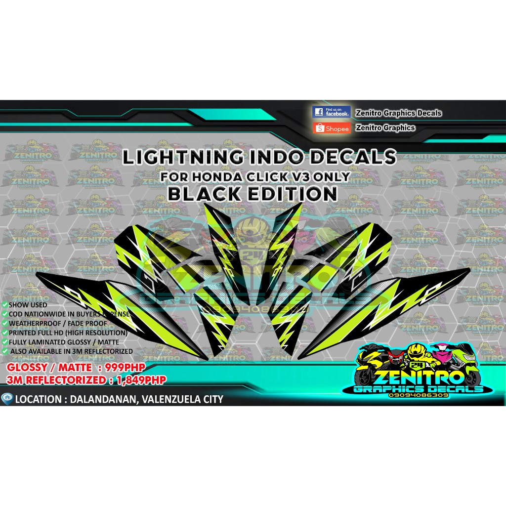 LIGHTNING STRIKE INDO DECALS FOR CLICK V3 125 ONLY (ZENITRO GRAPHICS DECALS)