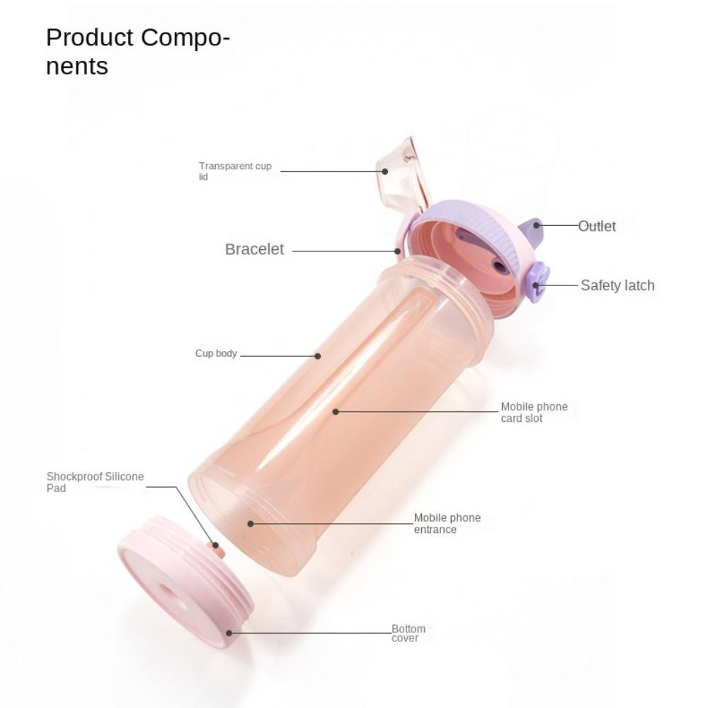 LILAC Sports Water Bottle, 480ml Leakproof Hiding Phone Bottle, Opaque with Secret Compartment Plastic Cup