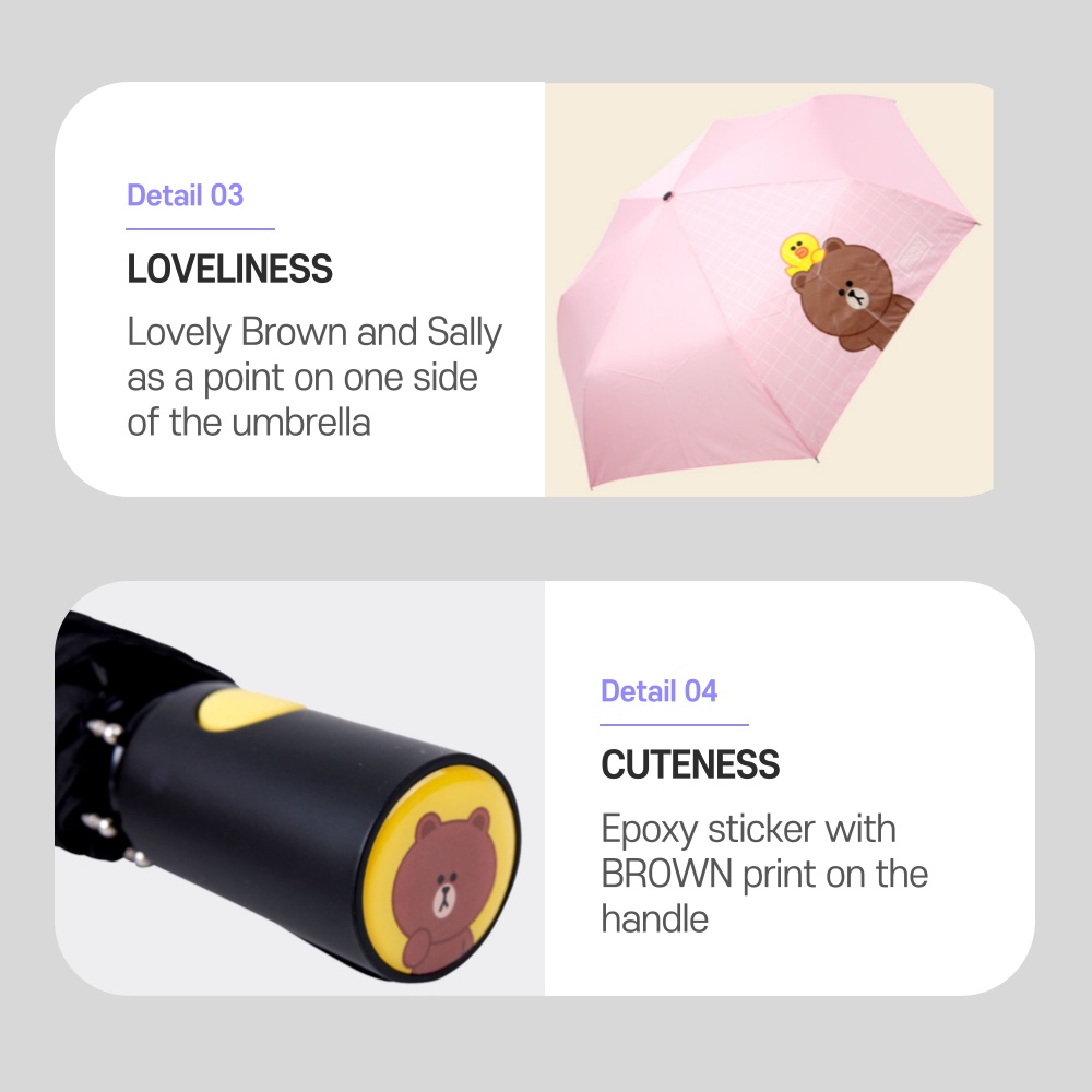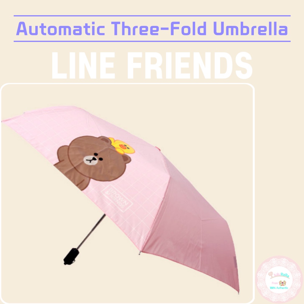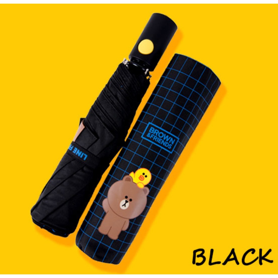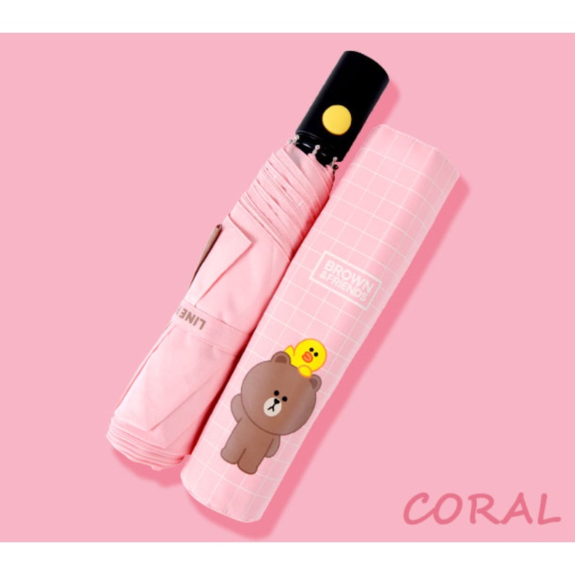 LINE FRIENDS Automatic Three-Fold Umbrella Black Pink