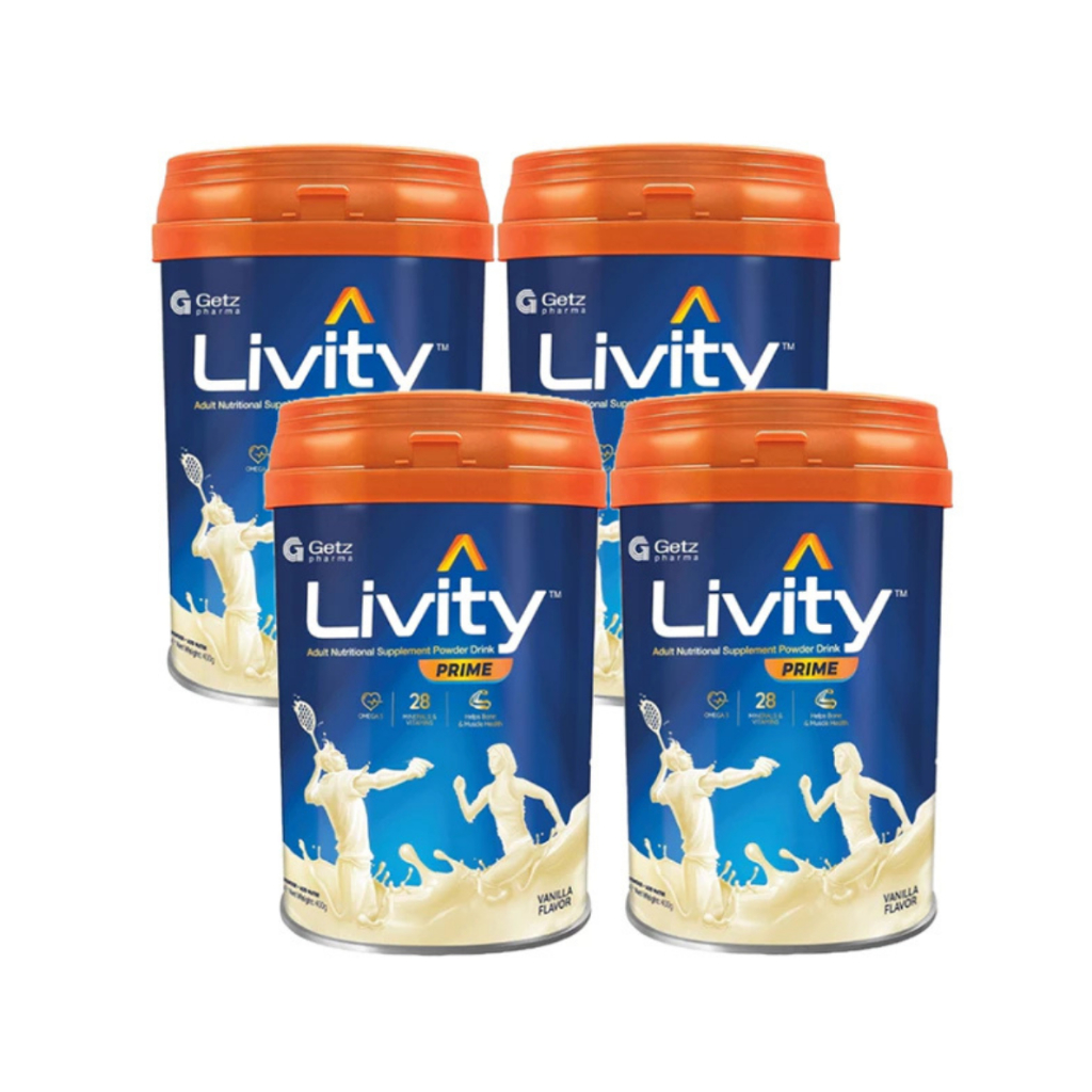 LIVITY PRIME Adult Milk - Nutritional Supplement Powder Drink Vanilla Flavor 400g x 4