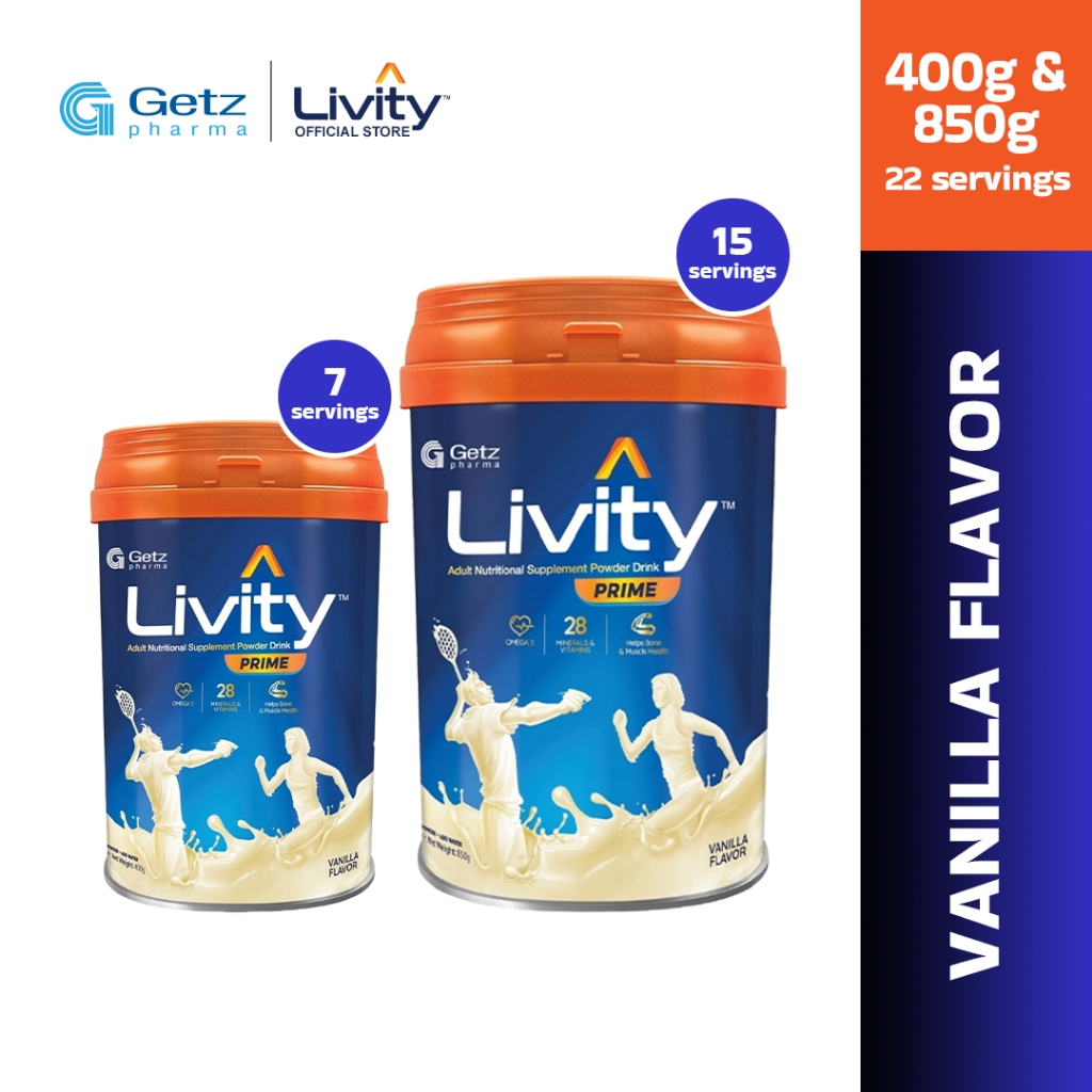 LIVITY PRIME Adult Milk - Nutritional Supplement Powder Drink Vanilla Flavor 400g & 850g